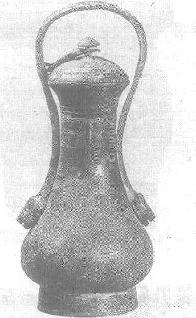商。酒器。通高28.1厘米,口径7.3厘米。1950年河南省安阳市武官村出土。北京中国历史博物馆藏。此卣细颈鼓腹,腹最大径在下部,低圈足。盖钮呈锥形,有蝉形链连提梁。提梁两端作蛇首,梁身饰菱形纹,如蛇身有鳞。颈周有两道弦纹,下为饕餮纹。铭文“北单”二字。此器出自武官村大墓。提梁与卣颈紧贴,造型秀美。梁作两头蛇形,与河南郑州向阳食品厂所出二里冈期卣一脉相承。铭文应为族氏。殷墟卜辞有“东单”、“南单”、“西单”,商金文有“西单”、“南单”。商纣死处称“南单之台”,可参照。