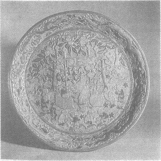 “大明嘉靖年制”剔彩货郎图盘