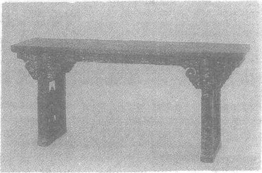 清。案面长193.5厘米,宽48厘米,高87.4厘米。北京故宫博物院藏。长方形案面,矩足,下设托泥。牙条均作卷云头形。案通体髹黑漆,上用螺钿,金银片嵌以山水人物,花卉叶脉等纹饰。案背刻“大清康熙辛未年制”(公元1691年)楷书款。此案造型稳重,结构简练,纹饰细缛华丽。“嵌螺钿”,亦作“螺填”,是将贝壳薄片制成人物、花鸟、山水、草兽等形象镶嵌在雕镂或髹漆器上的工艺方法。