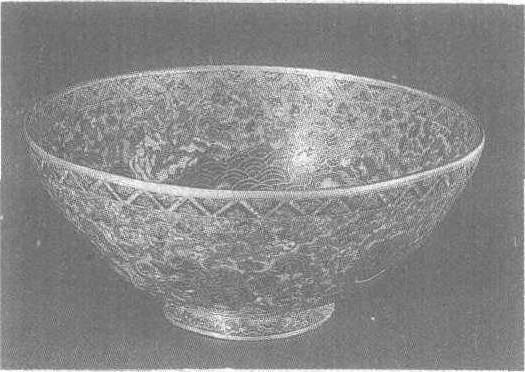 | 释义 | “景泰年制”掐丝珐琅海马纹大碗 “景泰年制”掐丝珐琅海马纹大碗明。高10厘米,口径23厘米。北京故宫博物院藏。碗为铜胎镀金。圆形,直口,圈足。碗内外纹饰相同。内底以镀金铜单粗线条开圆光,饰折枝牡丹一支,开光外圈围莲花一周。壁下部饰海水江牙图案,内有黄、白、红、深蓝、浅黄、墨绿色海马各一只。口沿饰三角装花锦纹。通体以浅蓝釉为地。足内镀金,中心刻阴文单直行“景泰年制”楷书款。