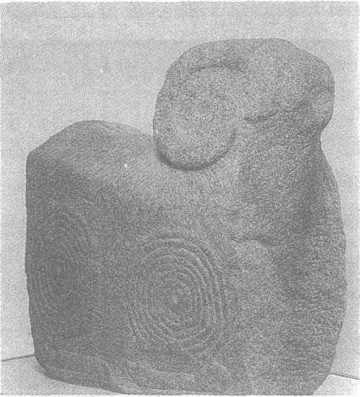 东汉。高95厘米。山东省临沂县石羊岭发现。北京故宫博物院藏。利用矩形石料的天然形态稍加雕造而成。羊长犄内卷,小嘴前突,仰面朝天,端正卧伏,憨态十足。内屈的四腿以数重同心圆表示,颇具装饰的味道。此羊与故宫博物院陈列的另一只羊为一对,胸前分别刻以“孝子孙侯”, “永和五年”(公元140年)和“孙仲乔所作羊”等字。似此有确切纪年、营造者和雕刻工匠姓名的石雕作品颇为少见,这些铭记为研究我国古代石刻艺术史,提供了重要的资料。