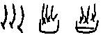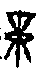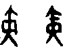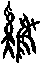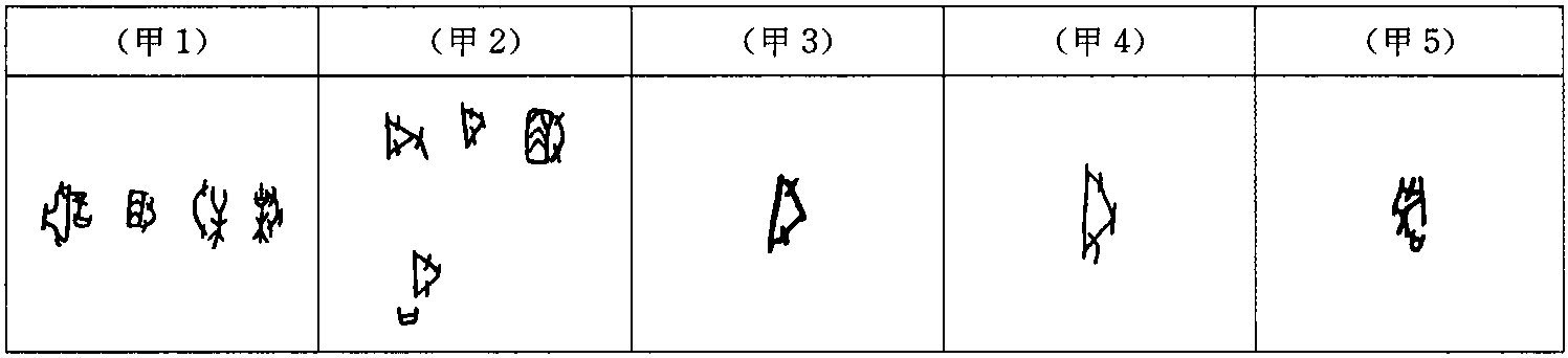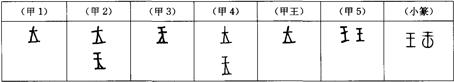 (五)寫實的程度 寫實的圖畫比較容易被簡化為抽象或變形的筆劃,很少有逆行的例子。六千多年前仰韶文化陶器上的魚紋彩繪,慢慢由寫實變成幾何形的紋飾,就是好例子。銅器上的圖案也有相同的趨勢,商代的饕餮紋還可以看出動物眼眉口鼻等形狀和正確的位置,到了西周就逐步簡化,終成交纏的幾何形圖案,難看出動物的形象。又如南方印紋陶的蛇紋本是越族的信仰圖騰,其蛇形與斑點也簡化和演變成幾何紋。要把抽象的筆劃文字還原為具體的圖象,如果沒有同類詞句的比較,常是很困難的。如《合》33041與33042都有一個方國名,一版寫得相當的抽象,另一版則頗像一隻金龜子的形象( )。 其前應該是更為寫實的形象, 很可能就是 《三代》 16.47b銅角上的族徽( )。 有了具象的圖形, 其省簡的過程就容易了解。中國漢字從象形的特徵演變到今日的符號特徵就是一個很好的例子。 寅(字70)本借箭形為干支 ( ), 第五期在箭身加方框( ),至西周中期就完全變形 ( )。 比較 “具體的形象描寫”和 “不成形的筆劃”之間的遲早,無疑具象形的要較原始。如上所述,學者主張年代較晚的銅器銘文上的字形,尤其是族徽文字,一般要較商代的甲骨文字形早,就是因為其上描寫的物體形象具體些。這個原則還可以應用到文字的部分構件。譬如人的眼睛,看起來近鼻子的一端較寬,故早期的字形,眼睛的構件,就寫成一邊寬一邊細,如甲骨文作 ,後來小篆寫成同寬度的 。 朢初作 或 , 小篆作同寬度的 , 眼睛都失去寫實的意味, 自是較遲的字形。 又如動物的形象,畫出身子或腳爪的,自也比身子畫成一線或沒有腳爪的要早。虎(字18)就是一個很好的例子 ( )。 甲骨文的尋字(字294)作伸張兩臂以丈量一物之長度狀。第一期時,被丈量的器物有長管樂器的言( )、席子的㐁 ( )、不知名器等構件 ( ), 第二期以後出現所丈量的東西成為一豎劃的新字形 ( ), 可能從作言之旁一豎劃而雙手丈量之字形演變而來 ( )。 雖然伸張兩手以丈量長度的創意尚可意會,畢竟不若丈量實物的表意清楚,故從寫實的原則看,應是較遲之形。旁字(字148)作有犁壁之耕犁形,作用是把翻起的土推向兩旁。犁壁是塊寬板 ( ), 作矩形的要較工形的寫實 ( ), 就可判斷作矩形的要較工形的早。類似的變化也在帝字(字72)表現出來,花瓣或草紮神像的形象中的矩形方框 ( )也變成工形 ( )。