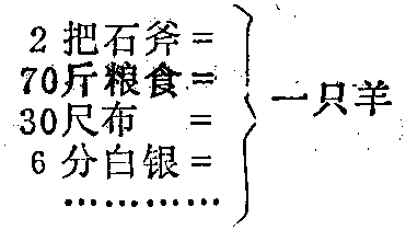 在这一等式中,一切商品的价值都是由充当一般等价物的“羊”来表现。一般等价物出现后,为商品交换带来很大方便。商品所有者先拿自己的商品同一般等价物相交换,再用一般等价物换取自己需要的商品。直接物物交换就被一般等价物为媒介的交换代替了。在一般价值形态中,商品的价值获得了充分的表现形态。但充当一般等价物的商品在不同地区、不同历史时期都不同,或用牲畜,或用贝壳,等等。当一般等价物最后固定由某种商品(金、银或其它金属等)来承担时,一般价值形态就过渡到货币形态。 |