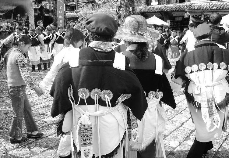 龙三王子叫英古挽着他的臂膀,闭上眼睛。英古只觉得身子像云朵一样飘起来,耳边一阵阵热风呼呼作响,不到一会儿工夫,双脚落地,睁开两眼,已经回到了故乡。龙子作法变化,满天浓云翻滚,顷刻下起大雨来。人们纷纷从屋里跑出来,簇拥着英古,在大雨中狂欢,唱歌跳舞,向飞在云端里的龙子致谢。 阴险可恶的旱魔看到这个情景,连肚皮都气破了,连忙来向龙子交战。旱魔满脸通红,伸着带火的长手,来捉龙子。龙子喷出一股大水,像一杆银制的长矛,直捅过去。旱魔招架不住,仓惶后逃。旱魔退到一道坎子边,早在这里设置了陷阱,它转身激怒龙子说:“来来来,看我把你烧成一堆灰!”龙子厉声呵斥:“我非要把你淹成个水鬼不可!”说着便冲过去。忽然,轰隆一声,龙子落进地底下去了。龙子上了当,旱魔狞笑着封住陷阱,吆来一头大象和一只狮子镇守洞口。 英古看见心上人被旱魔诱进陷阱,披起顶阳衫,奋不顾身来和旱魔搏斗。一连苦战了九天,汗水流干了,力气使尽了,喉咙干得冒火,终于倒下了。人们为了纪念她,从此,把她躺下的地方,称做“英古坉”(纳西语即丽江)。 善神北时三东,见善良无辜的人类惨遭旱患,龙也被囚禁深洞,便用雪精造了一条矫健非凡的雪龙去制伏旱魔。这条浑身雪白的长龙,乘风驾云,张开巨口,把旱魔放出的火太阳一个个衔在嘴里变冷后,吐到地下,只把变冷了的第八个火太阳留在空中当月亮。雪精龙胜利归来,又用身子把旱魔死死地压住,让它千秋万代不得翻身。以后,这条雪精龙变成了一座银冠玉披的高峰,就是现在的玉龙山。 龙子被囚在陷阱里,闻知英古战旱魔力竭而死的消息,十分悲痛。他便鼓足气力,冲出了陷阱,把压住它的大象和狮子冲开三十多丈远。龙子怀着深厚的爱情,化作一股清泉,围绕英古躺着的地方流淌,这股清泉水后来变作丽江坝子纵横交错的沟渠。龙子冲出的洞,就是现在的玉泉,又叫黑龙潭。 此时三东把雪精龙吐下的七个冷了的太阳,捏成七个光芒闪闪的星星,镶在英古的顶阳衫上,表彰她的勤劳、智慧和勇敢。姑娘们看着干裂的湖底又涌出一股甘甜的泉水,无比怀念英古。她们为了铭记英古的功绩,效学英古的榜样,仿照英古那镶有七个璀灿星星的顶阳衫,做成精美的披肩,世代相传。这样,象征披星戴月、勤劳勇敢的纳西族“七星披肩”,便沿袭到了今天。 ☚ 没右角的衣裳 蜡染 ☛ |