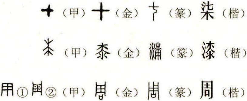 從西安去寶雞途中,只要你留神,在普集以西楊陵之東的區段裏,可以發現北南流向的一條不起眼的小河流,這條水系古稱漆水。因為在西周以前,北方除黃河稱“河”以外,大小水流均稱“水”。“漆水”的稱謂在概念上易與漆汁相混,後稱漆水河。 漆水從后稷所封邰的領地,自北向南疾流而下與渭河相會。“台”是胎的本字,狀周始祖后稷孕生之所。據《國語·晉語》記載:“昔少典娶於有蟜氏,生黃帝、炎帝。黃帝以姬水成,炎帝以姜水成。成而異德,故黃帝為姬,炎帝為姜。二帝用師以相濟也,異德之故也。”說有蟜氏生炎黃二帝是不可能的,炎黃分別是兩個族落和兩個時代的概念,在時間上相隔一段很長的距離,怎麼能是一母所生呢?《晉語》中的姬水、姜水說的是依水而居炎黃之後的兩個族落。這兩個族落,倒是《水經注》中所說的“岐水又東經姜氏城南為姜水”是可資的。都是華胥氏的後裔這卻是可能的。漆、姬同以“衣”為韻母,同聲同源,姬水也即漆水。漆水是新石器時代中葉黃帝族落發祥之地,也是黃帝姬姓後裔周族落生息發展的搖籃,更是周人興起以至滅商的發跡之地。 漆水流域,在遠古時代很可能是宜於生長漆樹形成的漆林區域,中國人用漆和使用漆具的歷史至少也有七千年了,浙江河姆渡文化所發現的木胎漆碗表徵著中國漆文化曙光的初倪。《詩經·國風》就有:“山有漆,隰有栗”,“椅桐梓漆,爰伐琴瑟”的記載。漆的長期應用也形成了中國特有的漆文化。 漆的長期應用形成了中國特有的漆文化,也形成和造就了有關漆的許多文字。 甲骨文、金文的“漆”,分別契作“ ”和鑄作“ ”,它取象於人們割取漆汁時在漆樹上留有的刀痕。後來為了與甲骨文的“甲”( )相區別,小篆作“ ”,楷書作“七”。以“七”造出的漢字有: 汁:從水。漆之汁。 切:從刀。切甲骨文作“ ”,也是以刀割漆汁的會意字。柒:從木,從水。切木而求水(汁)。 虎:從虎的頭、爪。左青龍右虎,虎,西方之位;西方的理數為七。 (釆音辨意同):從“⚏”(太陰)。“七水”獸趾之痕,“辨”的本字。皂:(原形为“皁”)從白。“白七”漆初割之色;漆的本色为黑,故皂为黑。 “黃帝為姬”,“姬”的原本發音或許是“七”,而由於“七”是用刀對漆樹主莖的割裂和表皮的切斷,因此由“七”所發出的聲音也都慘兮兮的,如漆、妻、戚、欺、泣、乞等。“姬”是七的音轉,故說黃帝姬姓是有道理的。 甲骨文的“ ”(漆),從木,從八會意。 “八”具分意,作“分木”的標示。金文的“桼”從木,從八,從水,作“分木出水”的標意。 小篆繁化又在金文基礎上增加“水”作“漆”。從甲骨文到楷書“漆”的造意都是一致的:木分水流。它的構形造義體現的是生漆生產的一般過程。 小篆的“ ”(漆)加“水”旁也因為“桼”是水名。楷書因襲之。漆,水名。《說文》:“水出右扶風杜陵岐山,東入渭”❶。漆水河,周人的母親河。是周人的母親河還在於,周始祖后稷孕於斯,生於斯,長於斯,治於斯。 “桼”還異構了一個字: 膝(厀):從肉(卩)。這裏的“桼”是擬人。一個以“肉”求取變化,一個以跽跪而失去節操,都取意於漆原汁色白,後赭,再黑以及它那“色變”、“掩飾”、“覆蓋”的質地。 關於周族名稱的來由和周族起源地,以及姬姜關係,劉軍社《先周文化研究》中有這樣三段接連的叙述: 周族名稱的來由。過去一般從《史記》之説,認爲周名稱是古公亶父遷岐以後才有的,但從武丁時期衆多的卜辭中有“周”、“周方”、“周候”等,武功岸底相當於殷墟二期的陶罐上刻劃有“周”字,從商與先周文化、先周文化與光社文化、先周文化與壹家堡類型文化的關係中,能明顯看出,武丁時期卜辭中的“周”即本書所論的先周文化所代表的“周”。既然殷墟二期卜辭與相當於殷墟二期的先周遺存中已發現“周”字,那麽,我們就有理由認爲殷墟二期以前即有“周族”之稱,很有可能,周族從其誕生開始就有自己的名稱——“周”,只不過我們没有發現殷墟二期以前的卜辭或其它文字數據罷了。 周族的起源地。我們今天雖僅能還其相當於商代的先周文化面貌與歷史,相當於夏代的先周文化面貌尚不清楚,但從最早的先周文化遺存集中於漆水流域的情况看,周族起源於漆水流域是不成問題的,而《史記》等文獻所載與考古資料正好相合,説明文獻記載是持之有故的。 姬姜關係。姬姓周族與姜姓羌族的接觸歷史,從目前的考古資料看,大致從二里岡時期即已開始,這兩個部族是并存於關中西部的土著部族,姜羌族以(今)寶鷄市區爲中心,姬周族則以漆水河爲中心,兩個部族一直友好相處,並世代通婚。尤其是古公亶父以後,與姬姜族在政治、軍事、文化方面同盟關係的建立與發展,對於姬周族勢力的壯大起到了極其重要的作用。也許正因爲如此,自古公亶父以後,以劉家文化爲代表的姜羌(戎)族文化完全融合於以鄭家坡文化爲代表的先周文化之中,自己本身固有的文化特點已無法從考古學角度完整地反映出來。 周人姬姓來源者三:“姬”是“七”的音轉,姬是姜炎族落的一位美女 ❷,周始妣姜嫄居漆,同時姬又為高辛氏帝嚳之妻(盡管那個時候“妻”的概念還尚未形成),就是這位“居漆之姬妻”孕生了周始祖后稷。