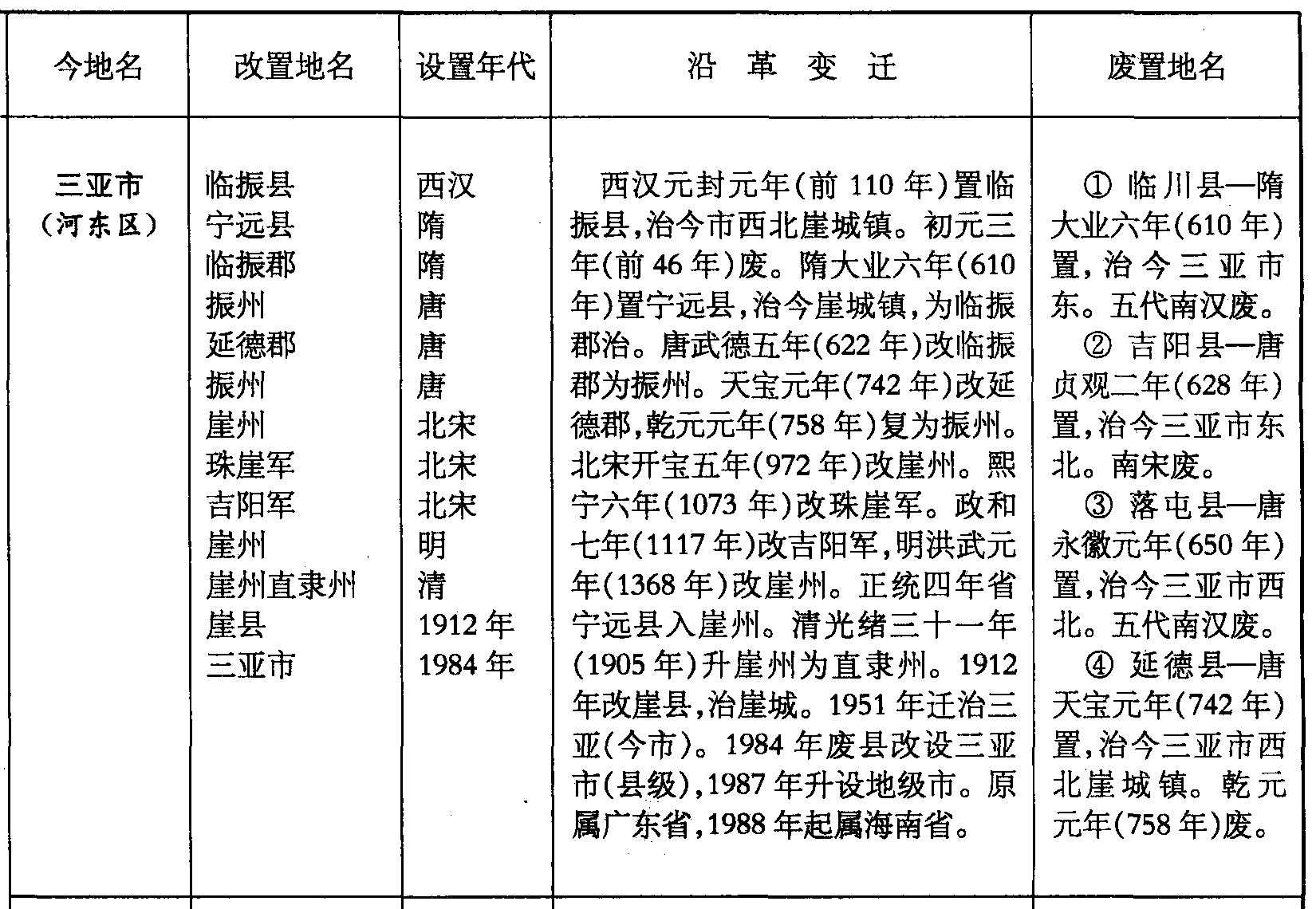 ❶ 临川县—隋大业六年(610年)置,治今三亚市东。五代南汉废。