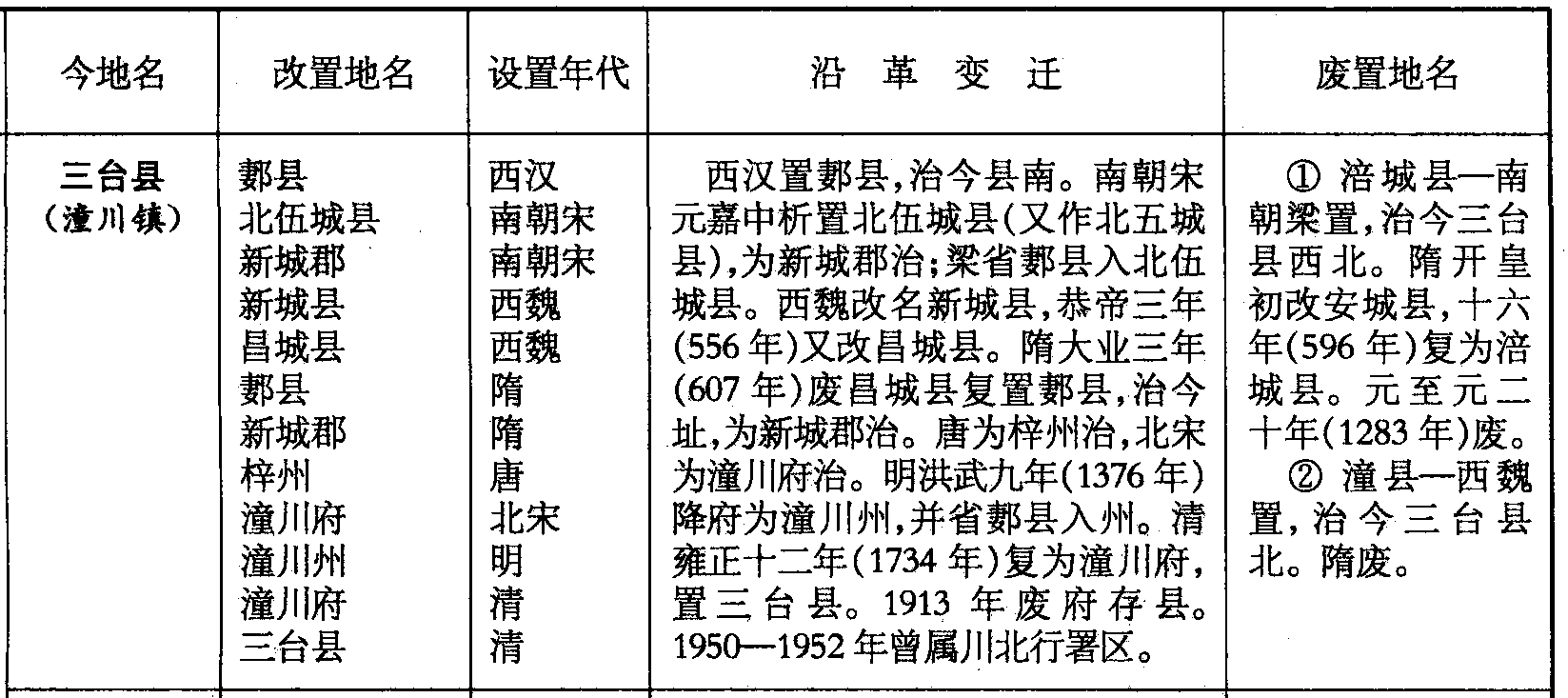 ❷ 潼县—西魏置,治今三台县北。隋废。