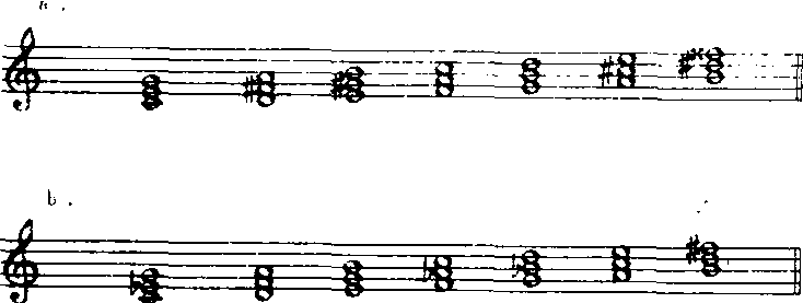 大、小三和弦为协和和弦,增、减三和弦为不协和和弦。不同结构的和弦常表现出不同的音响效果。大三和弦明亮开朗;小三和弦暗淡柔和;增三和弦有强烈的不稳定感觉,要求向外扩张;减三和弦有不稳定感觉,要求向内紧缩;不协和和弦多具有尖锐、紧迫之感。 ☚ 和声 七和弦 ☛ 三和弦triad |