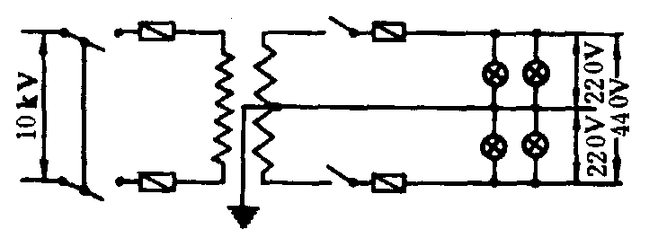 | 释义 | 三相-单相混合制配电系统triphasemonophase mixed distribution system在高、低压配电系统,根据用户需求以三相线路(大用户)或单相线路(小用户)向用户供电的配电系统。高压配电系统(图1)的干线由三相线路构成,分支线路由单相或三相线路构成,中性点运行方式又分直接接地和不接地两种。低压配电系统为单相双线或有中间抽头的单相三线系统(图2)。它可以为照明及小型单相动力用户供电。小型三相异步电动机亦可改为单相接入440伏单相系统运行(图3),三相电机改作单相运行时,其额定容量降低1/3。