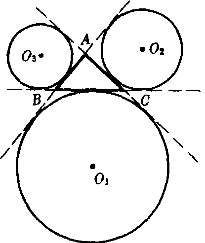 | 释义 | 三角形的旁切圆 三角形的旁切圆sanjiaoxing de pang qieyuan和三角形一边及另外两边的延长线都相切的圆.旁切圆的圆心叫做三角形的旁心.一个三角形有三个旁切圆,如图.