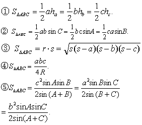| 释义 | 三角形的面积公式 三角形的面积公式sanjiaoxing de mianji gongshi在△ABC中,设∠A,∠B,∠C的对边为a,b,c;a,b,c边上的高分别为ha,hb,hc;s=(a+b+c)/2,r为△ABC内切圆半径,R为△ABC外接圆半径,△ABC的面积为