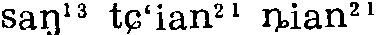 上前年sang4qian2 ian2(名)大前年。 上前年saŋ213tɕ‘ian21ian21sang213qian21ian21大前年。《二十年目睹之怪现状》第十八回: “这位姊姊就是婶娘的女儿,上前年出嫁的,去年那姊夫可也死了。”又第六十五回:“上前年先母见背下来,不上半年,先兄,先嫂,以及内人、小妾,陆续的都不在了。” 上前年一0336名大前年。⑴江淮官话。江苏盐城〖 〗。⑵西南官话。四川成都〖 〗、邛崃〖 〗。湖南嘉禾。◇ 古华《浮屠岭》四:「~大跃进时头头脑脑们吹牛皮,搞浮夸。」⑶湘语。湖南吉首〖 〗。   |
