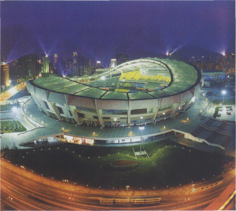 | 释义 | 上海体育场Shangha i Tiyuchang位于上海市区西南部,地铁一号线和内环线交汇处。毗邻徐家汇商业区,西靠上海体育馆和上海奥林匹克俱乐部。是一座直径为300米的圆型建筑。总占地面积为19万平方米,总建筑面积近17万平方米,可容纳8万名观众。在其2~4层的环形看台间中,设置有100套供竞技观赏的豪华包厢。观众席上方马鞍型大悬挑钢管空间屋盖结构,屋盖面积3.6万平方米,最长悬挑梁为73.5米。上海体育场南侧观众席上方矗立着一座由2块面积各为105平方米屏幕组成的大型彩色图像显示屏,左边为三基色全彩屏,右边为双基色屏。该系统由计算机网络控制,具有编辑功能,可显示足球赛比分,田径比赛成绩等图文信息,也可播映电视实况、录像、影碟等视频节目。终点摄影计时设备是瑞士欧米茄公司专门为田径比赛设计,设有起跑线抢跑监控系统,终点摄影能辨别1/100秒的成绩差别,能满足任何级别的田径比赛的需要。场内共有24台电梯,其中包括1台残疾人专用电梯。体育场还有发达的通讯设备和优质的供暖系统、供冷系统、电视监控系统、消防报警系统及先进完善的楼宇自动化系统。足球场草坪设置有电脑控制的喷灌装置和地下排水系统。田径场总面积约1.4万平方米,主跑道内设9道1.22米宽的跑道,并铺设国际田径联合会认可的国际品牌塑胶跑道;辅助跑道内设铅球、标枪、撑杆跳、跳高、跳远等场地。主席台位于西看台3层,有600个固定座位,记者席设在主席台旁边。赛后中心总面积105平方米,设有2个兴奋剂检测房间。还拥有运动员裁判员休息室、赛前中心、体育场宾馆、展示厅(位于体育场南侧总建筑面积8450平方米)、地下广场、商场、海洋世界。新闻发布厅位于体育场一层,面积约200平方米,可容纳200人参加,有100个固定席位和主席台,采用同声翻译系统。