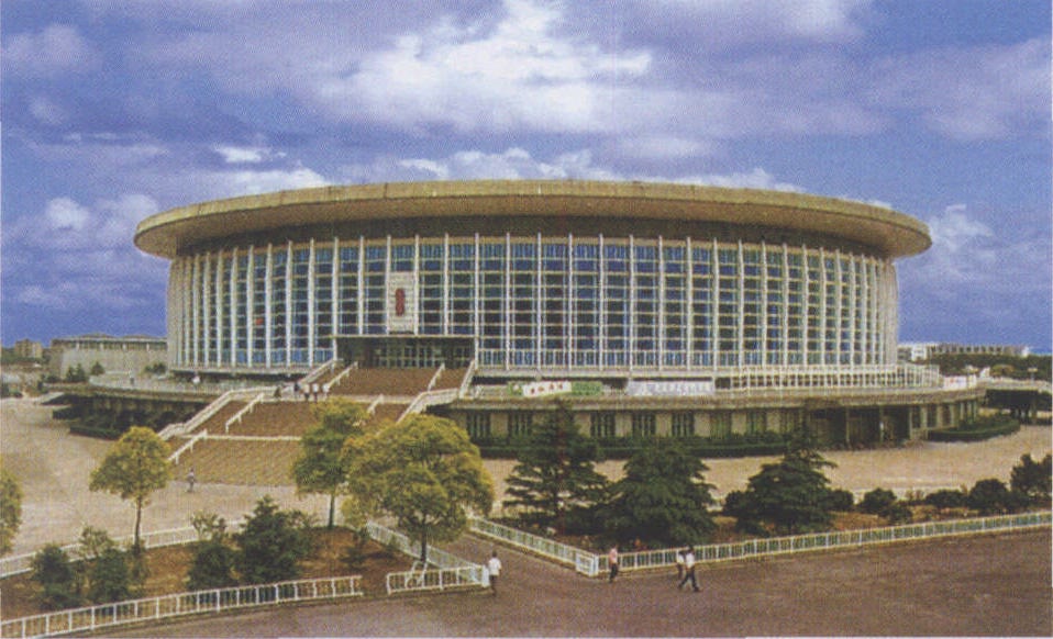 | 释义 | 上海体育馆Shanghai Tiyuguan位于上海市区西南角。1975年8月建成。占地面积106332平方米,总建筑面积47800平方米。整个体育馆由比赛场馆、练习馆、机房和生活区组成。比赛馆呈椭圆形,建筑面积31000平方米,直径136米。屋顶最高处离地面33.60米。比赛大厅建筑面积10200平方米,设有1.8万个观众席位。比赛场地面积为42米×38米,移走2000个席位的活动看台后,可放16只乒乓球台同时进行比赛。场内设有电动升降排球网柱和电动翻版折叠式篮球架。练习馆有3个长、宽各35米,高10米的综合性练习房和2个长35米、宽12米、高6米的乒乓球房。