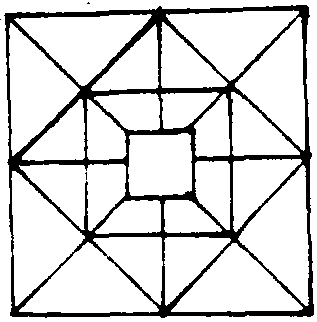 | 释义 | 〗。![]() ![]() 下三 下三壮语音译,即捉三子棋,广东连山和广西各地壮族娱乐形式。棋格如图:玩者两人,各持置位之子若干,各有标内以便区分。双方各持己子,按一以放置一子在图的方位上,轮流放置,把图的方位放满为止,在放置的过程中,如有一方所放的子,在同一归线(纵、直、横均可)的方位上,排列成三子,就可以叫“三”。一叫“三”,就可以把对方已置放的方位的子压住其一,使其失去叫三的机会。待互相把子放满图的方位时摘去,留出空位作走子时用。两方按图的方位,放马子以后,摘掉双方所被压过的废子,然后走子,走子时有一个规定,先放子者后走之,后放子者先走子,总之不论放子与走子,只要把自己一方的子,排成一线三个,都可以叫“三”。叫了一次“三”,就可以把对方的子压倒一个或摘去一个,打破对方叫“三”的阵脚,叫“三”越多,越能消纳对方的势力,自然可以取胜。