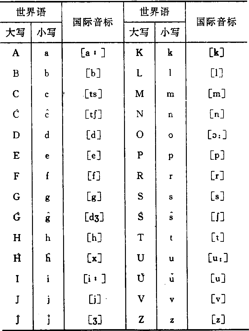 | 字词 | 世界语 |