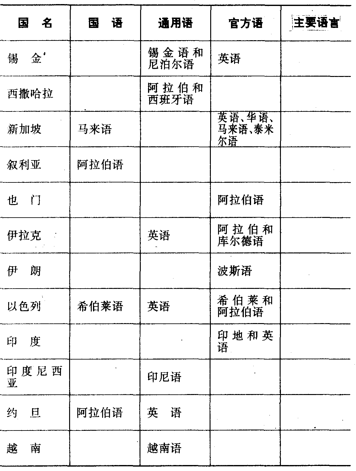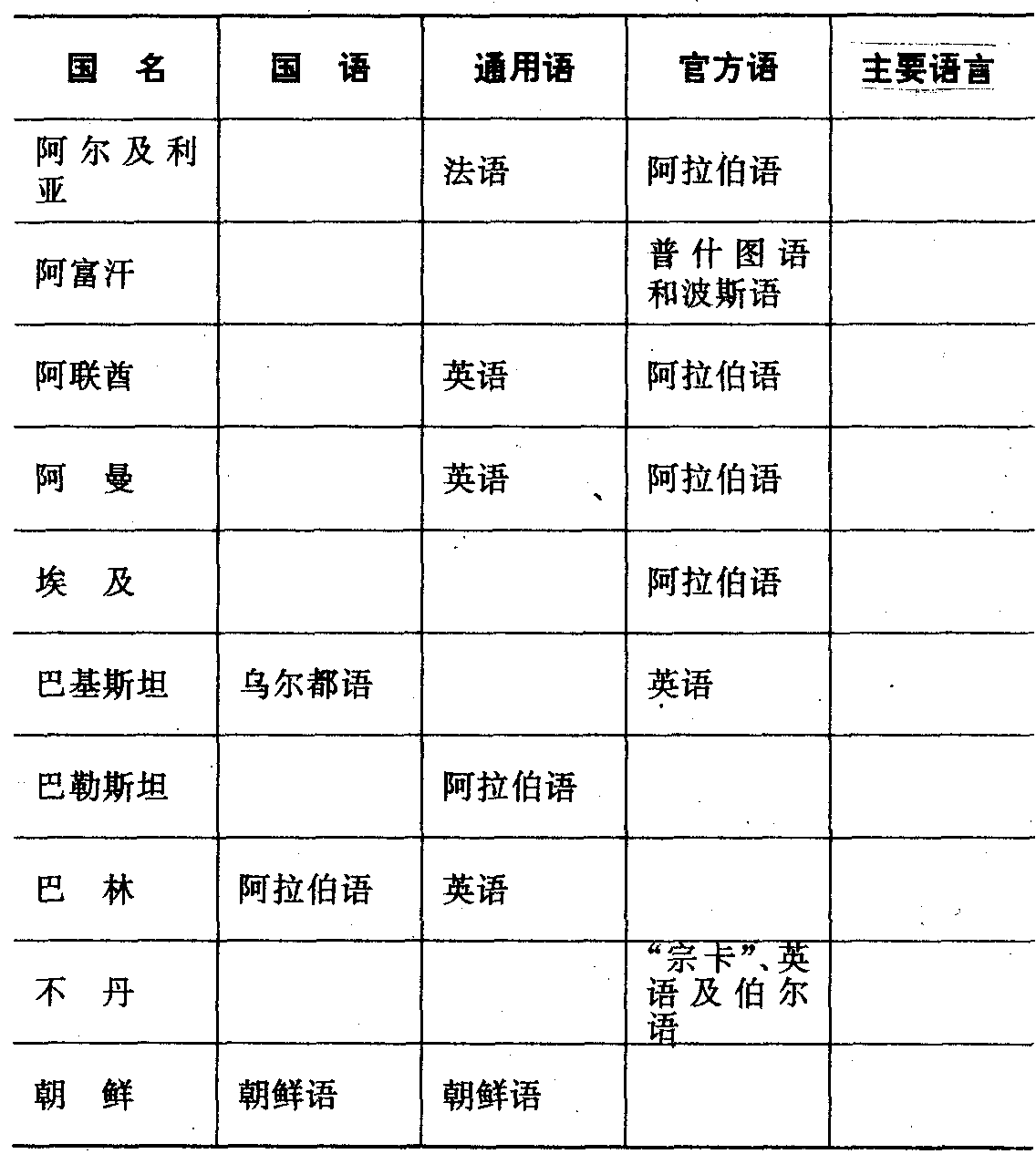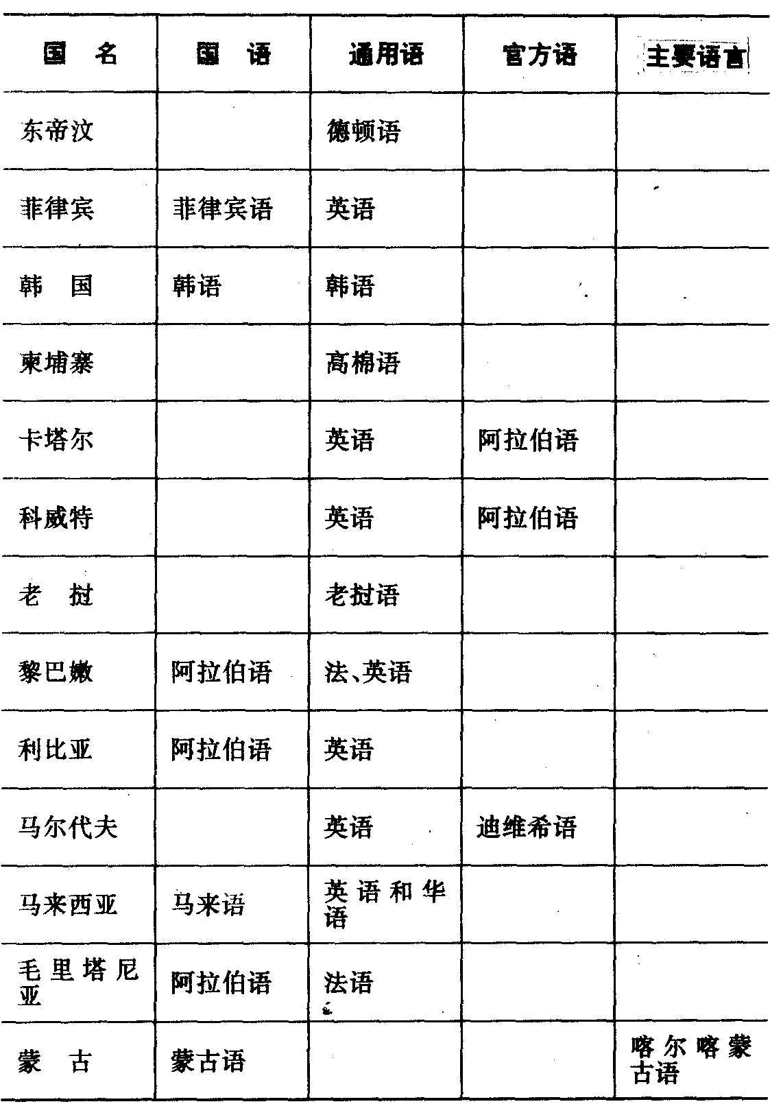 东方各国国语、通用语及官方语