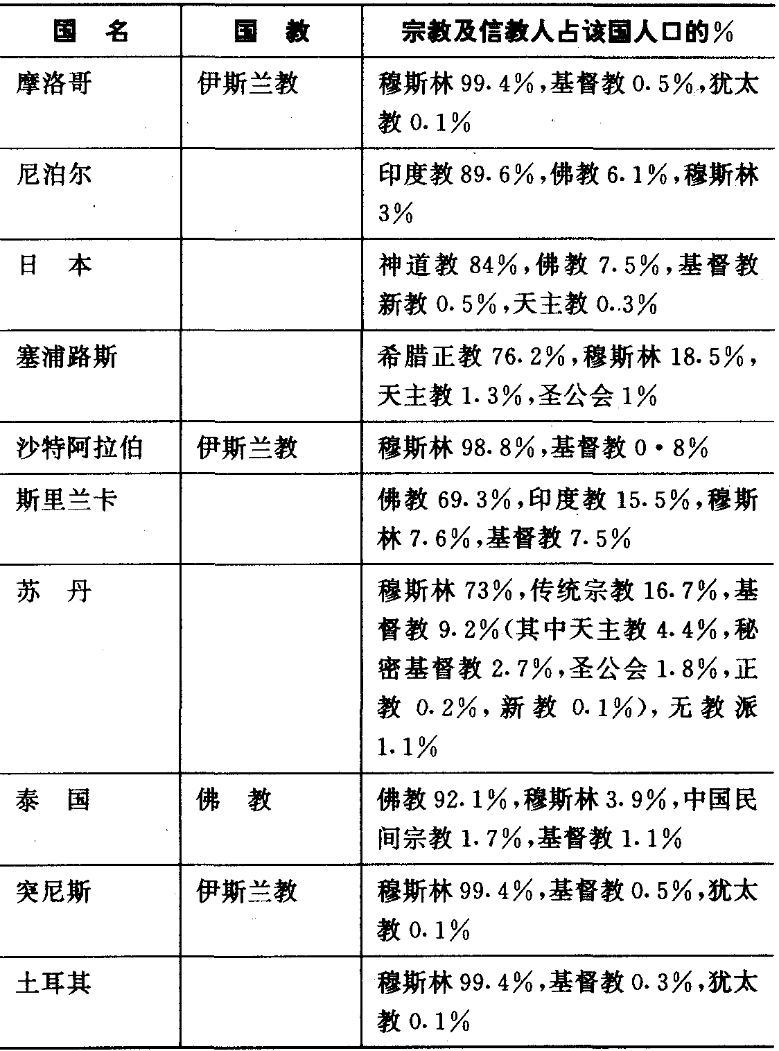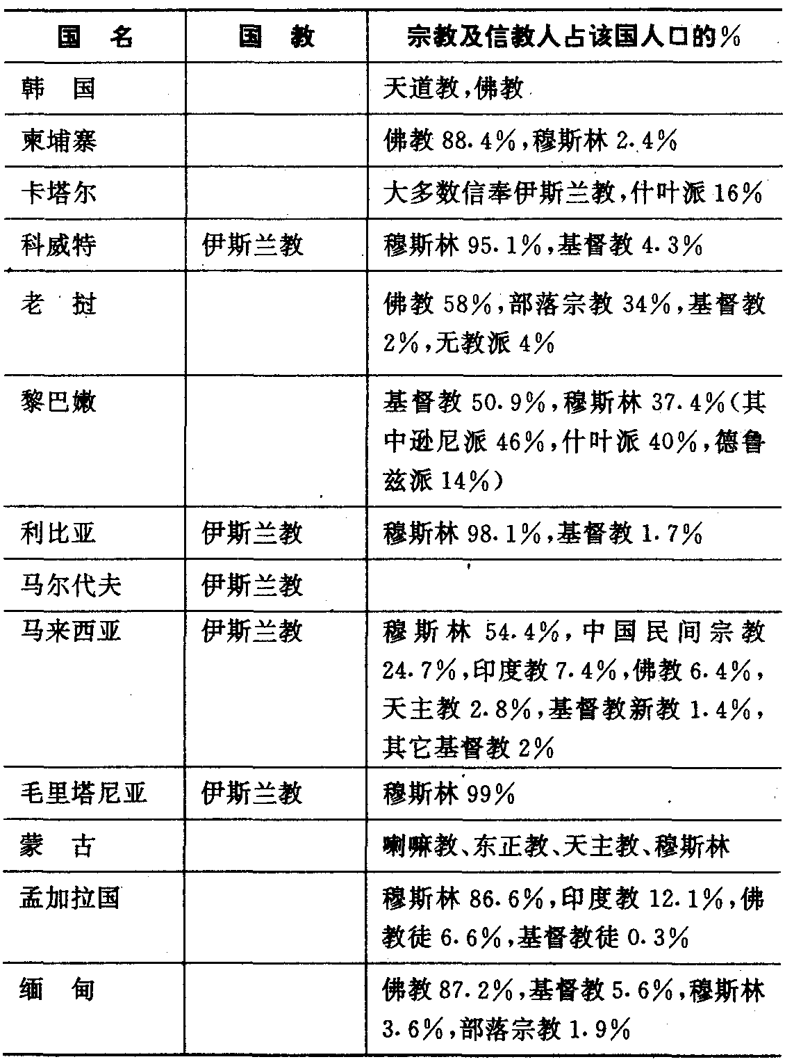 东方各国宗教简表