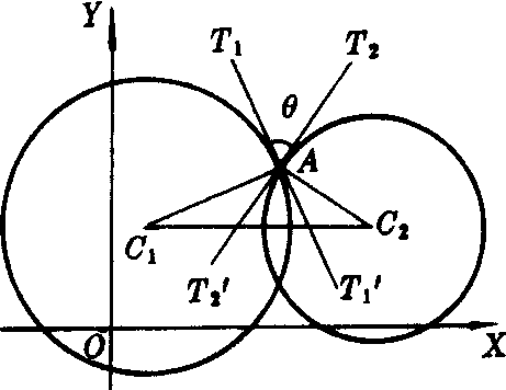 ☚ 两圆公切线长定理 两圆正交 ☛ 两圆的交角 两圆的交角liangyuan de jiaojiao指过两圆的交点分别引两圆的切线,两条切线所夹的锐角或直角;两圆的交角为直角时,称两圆互相直交或正交.