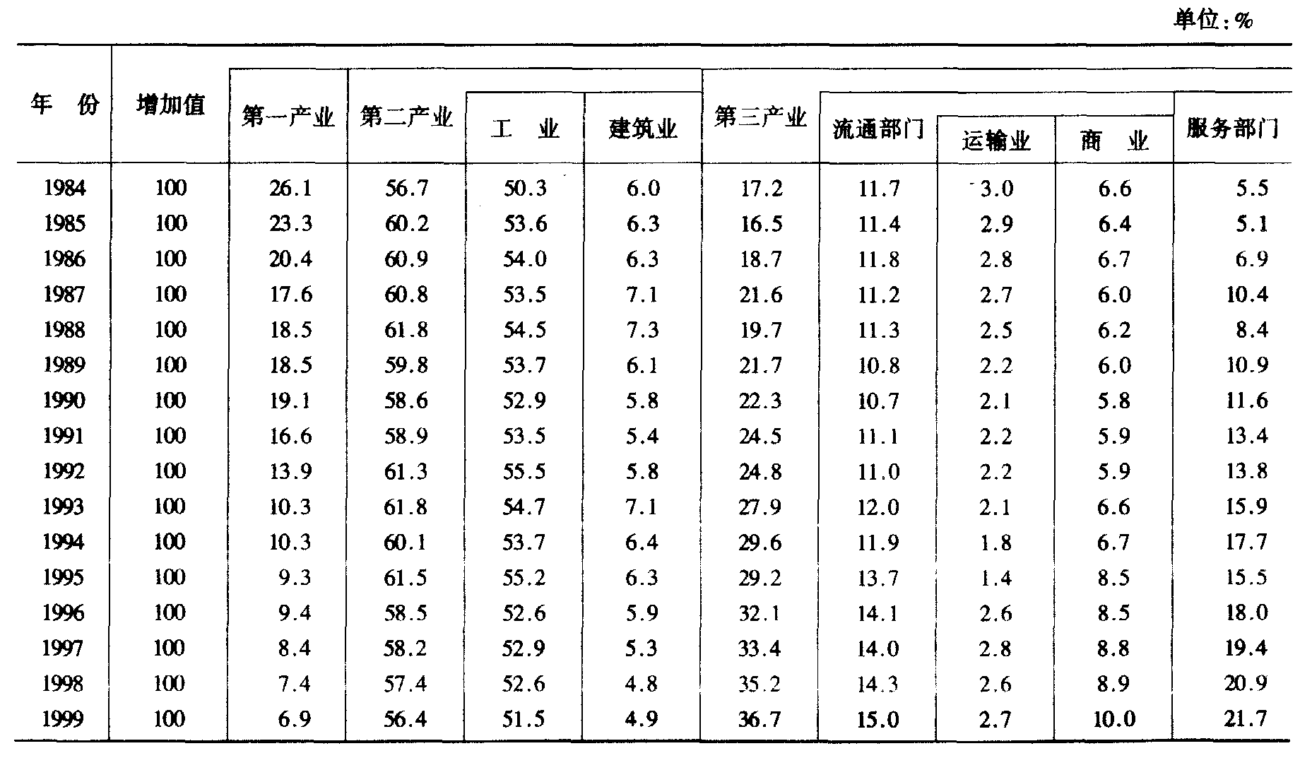 七、农村地区增加值构成
