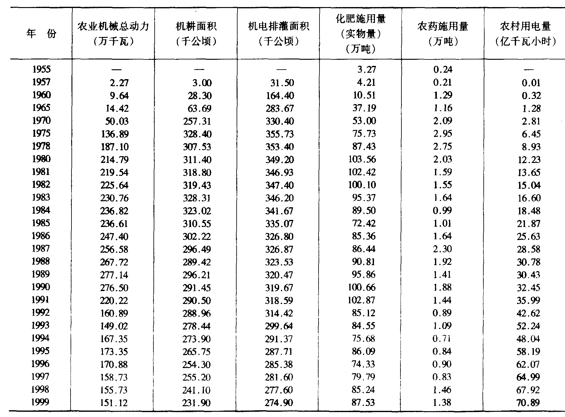 注: 1997年起仅限于乡镇工业企业基本情况。年总产值为现价。 十二、农业现代化
