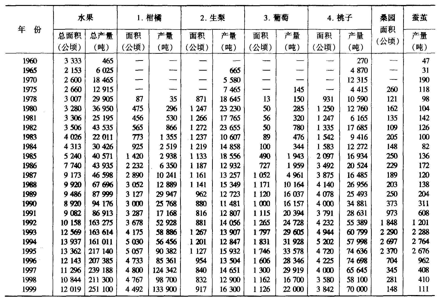 十四、水果、蚕茧生产