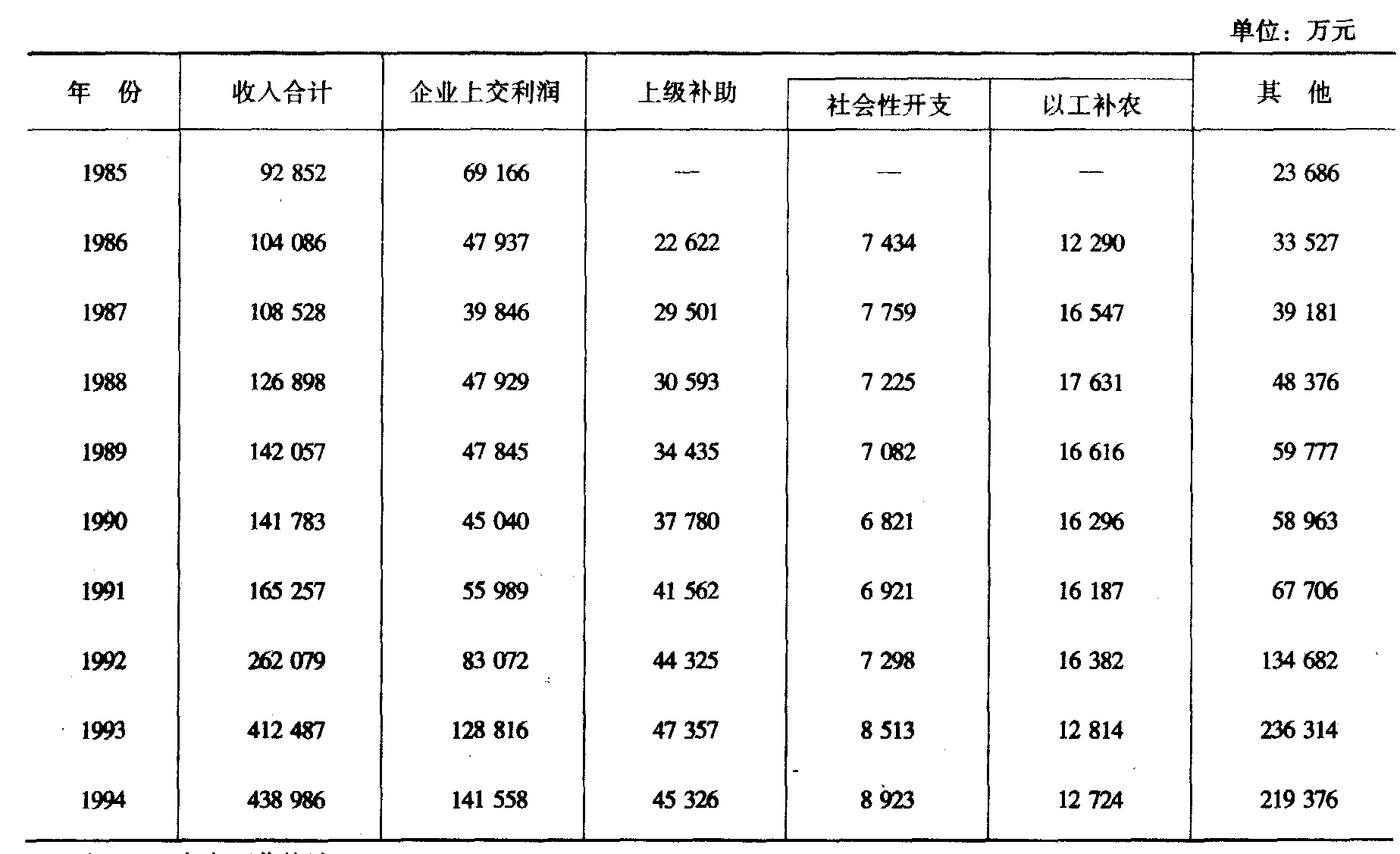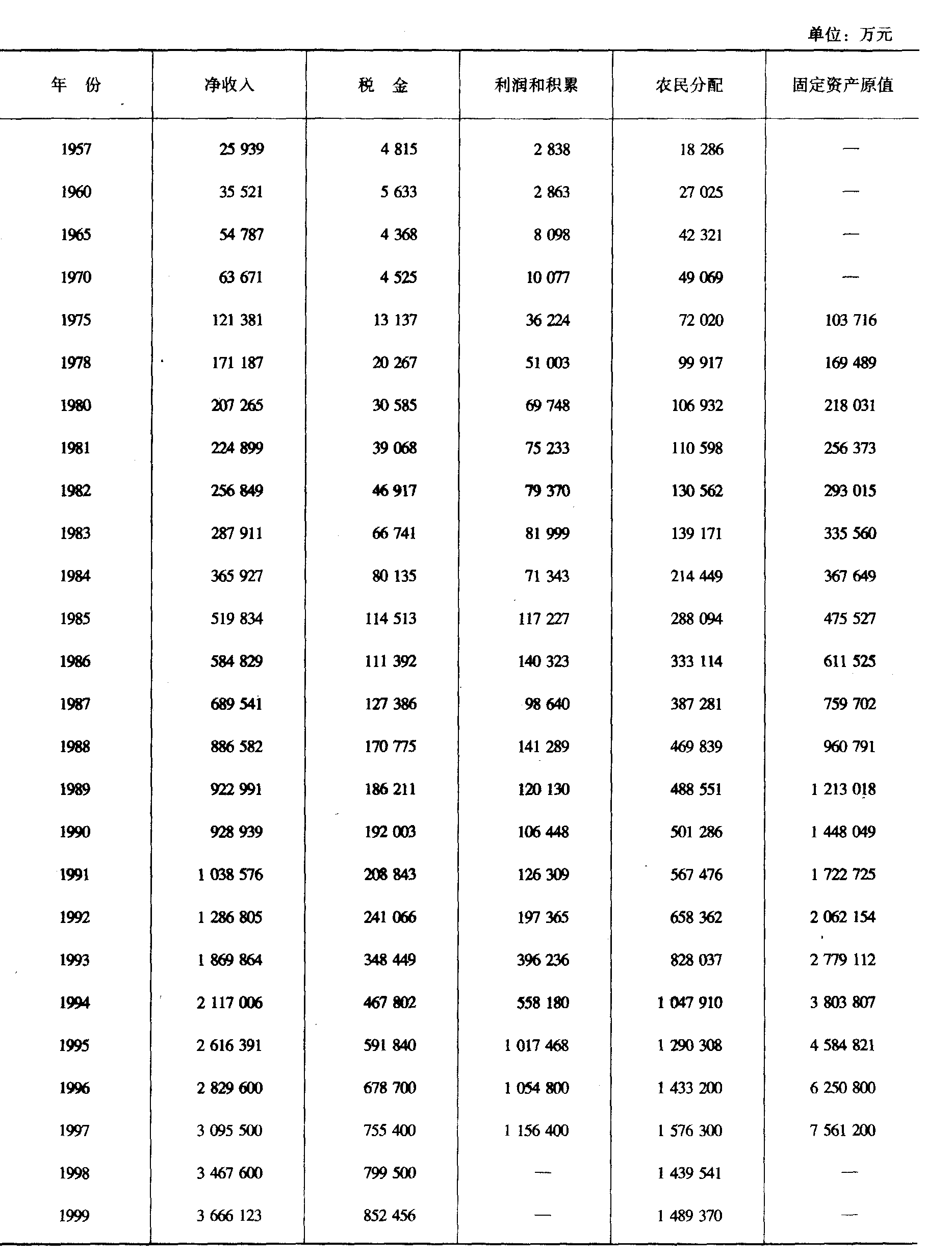 注: 1998年起出口量统一用海关数据,食品分类与经贸委不一致,且只有价值量无实物量,故1998、1999两年资料空缺。 十九、农村合作经济总收入