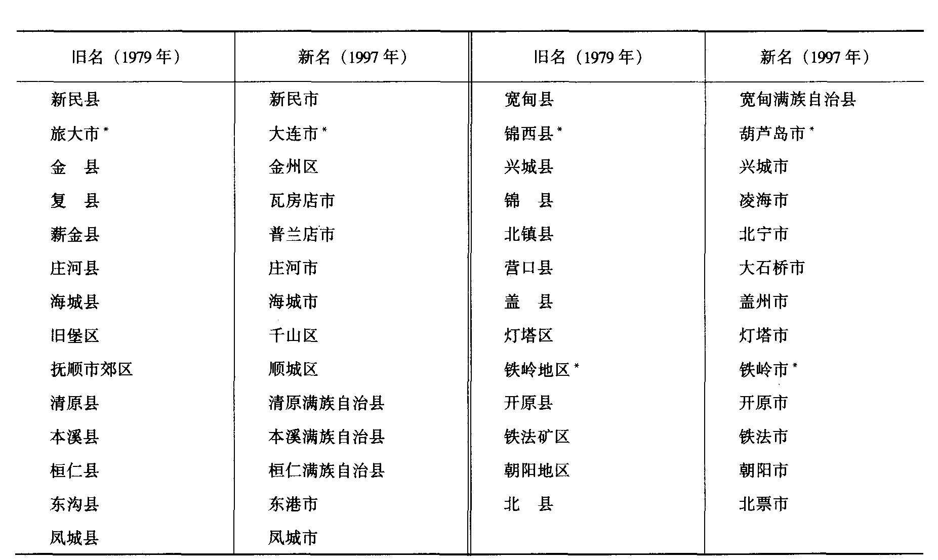 附录四 辽宁省新旧地名对照表