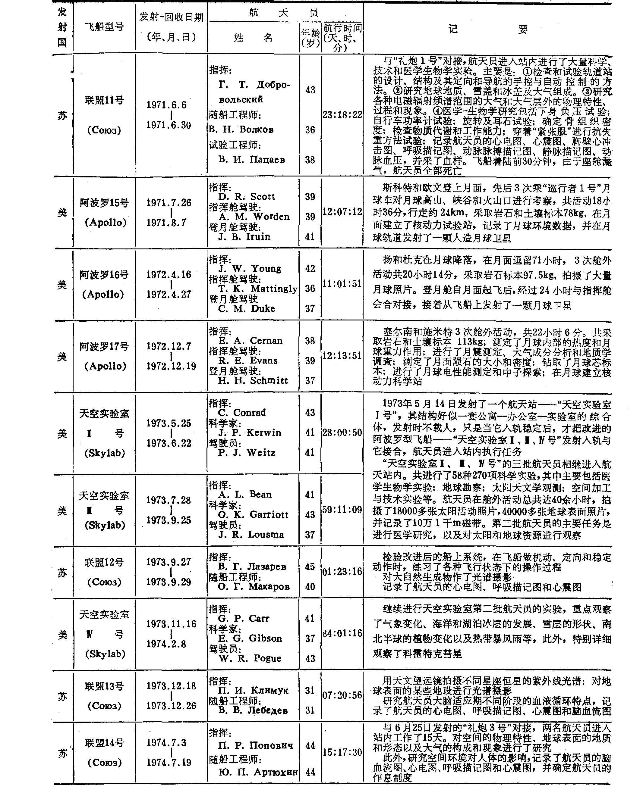 注: 美国飞船型号[]内的数字表示航天飞机第×次飞行