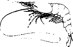 中国对虾Chinese prawnPenaeus chinensis L.,甲壳纲,十足目,对虾科,对虾属。体形长大,侧扁,甲壳甚薄,表面光滑,额角细长,平直前伸,末端超出第二触角鳞片的末缘,上缘7~9齿,下缘3~5齿。头胸甲具颈沟、眼眶触角沟及额角侧沟,额角侧沟仅延伸至胃上刺附近,无中央沟,具触角刺、肝刺,无颊刺。第4至第6腹节背缘有纵脊,尾节两侧无活动刺。体较透明,体表布有棕蓝色斑点,胸部及腹部肢体略带红色,雄虾体色较黄。栖于沙泥底质海域,主要分布在中国北部、韩国,在海洋渔业中占相当重要地位,亦是重要的人工养殖对象。