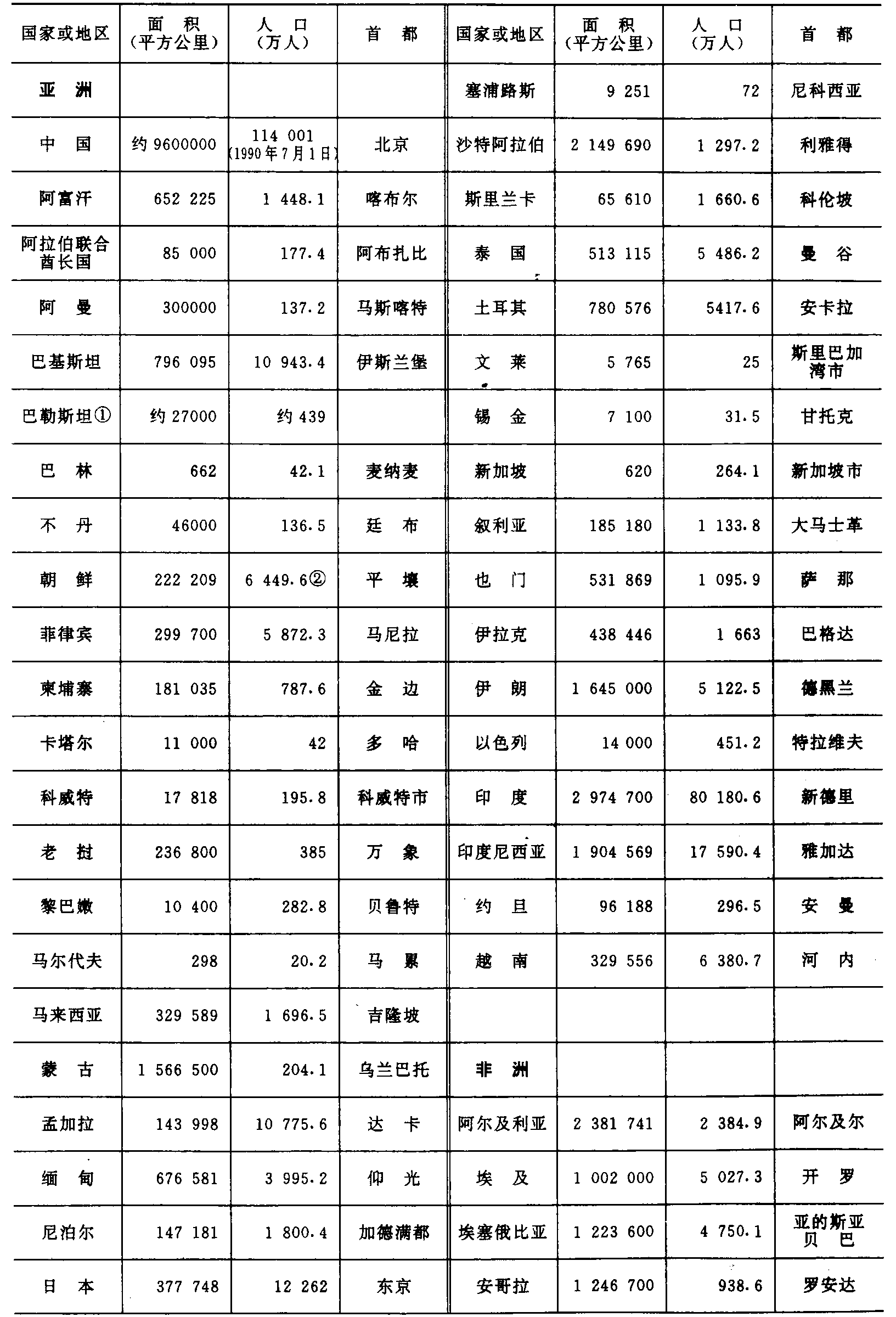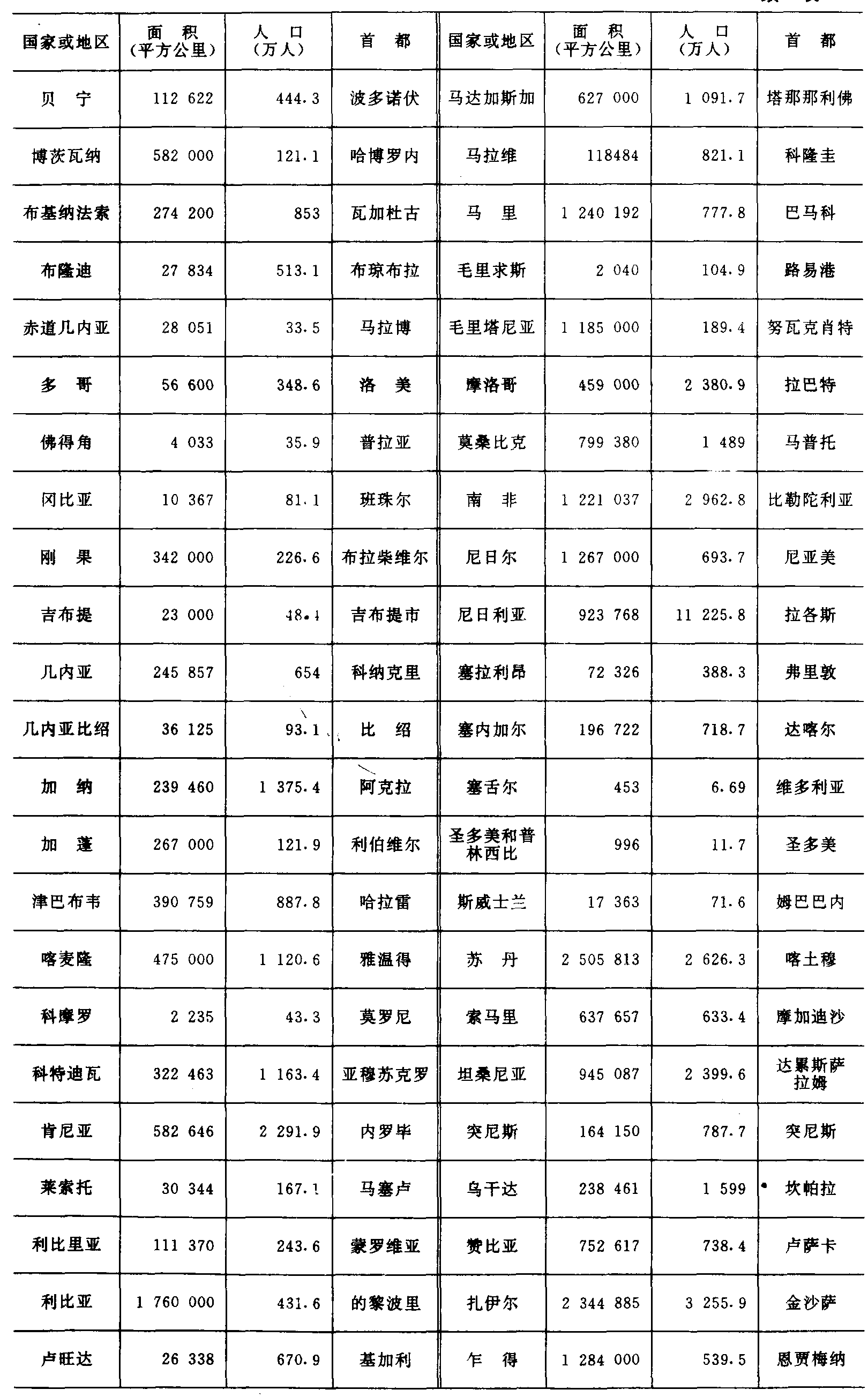 | 字词 | 中国小学教学百科全书︱附录(世界各国家和地区的面积、人口、首都(首府)表 (1988年)) | |
