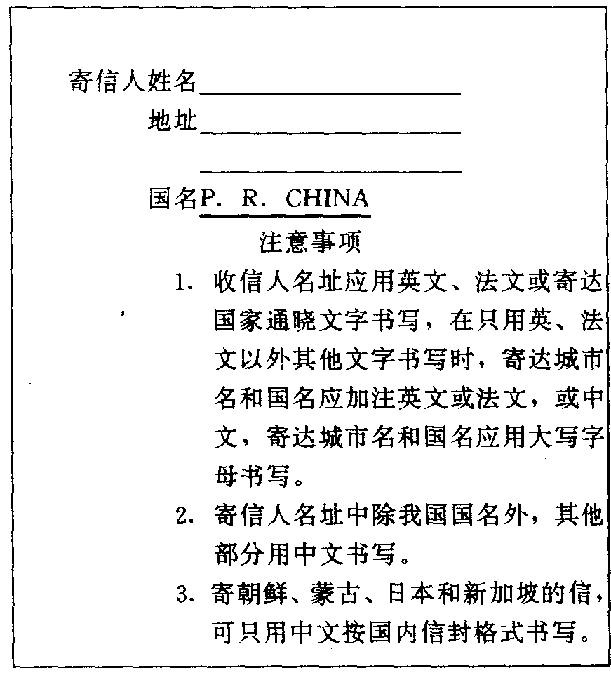 | 释义 | 中国式信封的写法 中国式信封的写法自1989年开始,我国邮政部门开始使用统一的外函信封,尺寸为11×21cm。这种信封采用两面格式,即正面为寄达人姓名、地址,反面为寄发人姓名、地址。其特点是清楚、简明,既便于发信人书写,也便于邮局检信人识别。发信人须按信封背面的注意事项认真填写。
