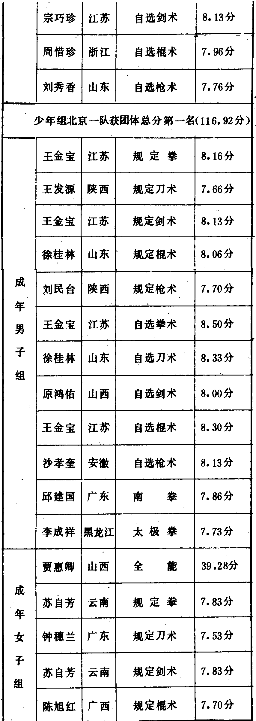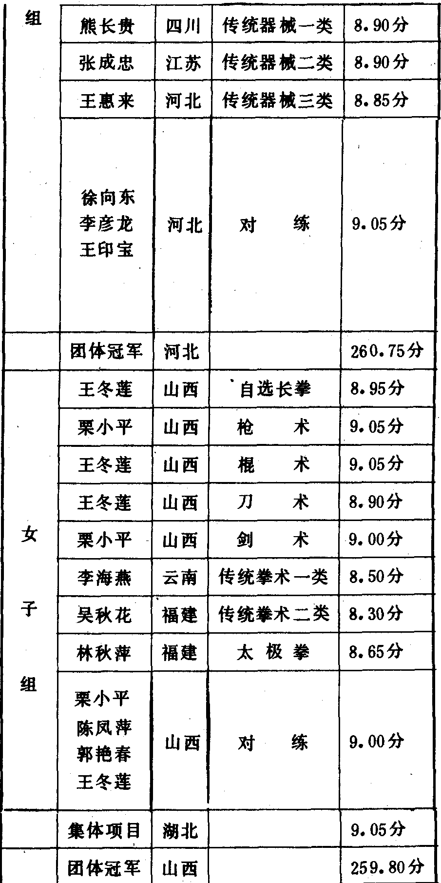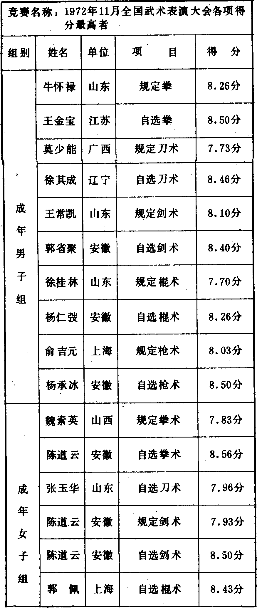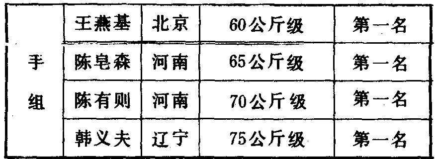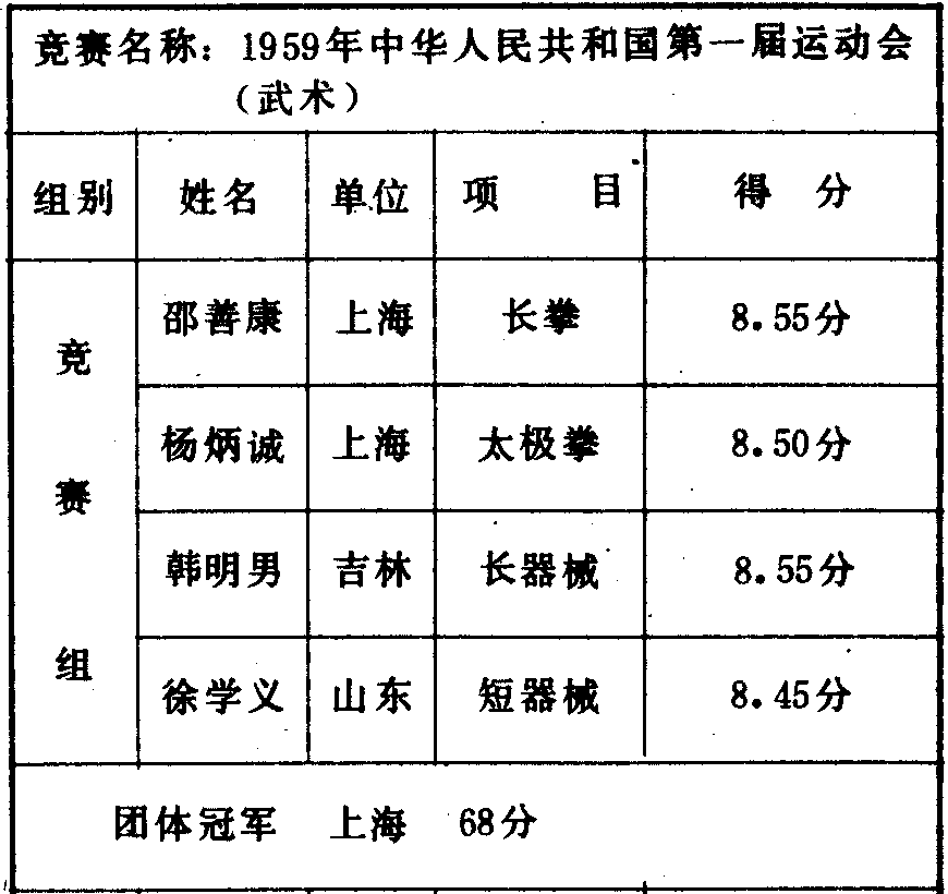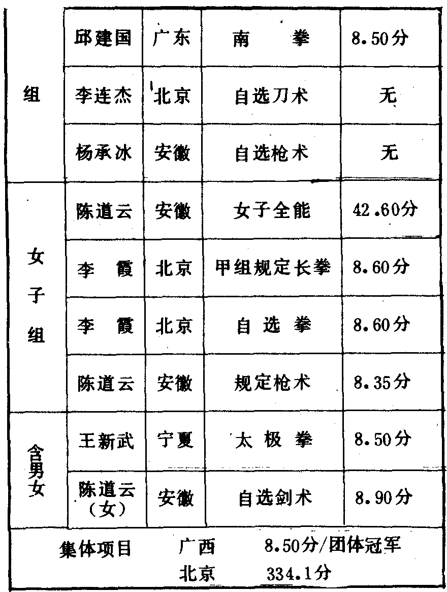 历届全国武术比赛冠军一览表