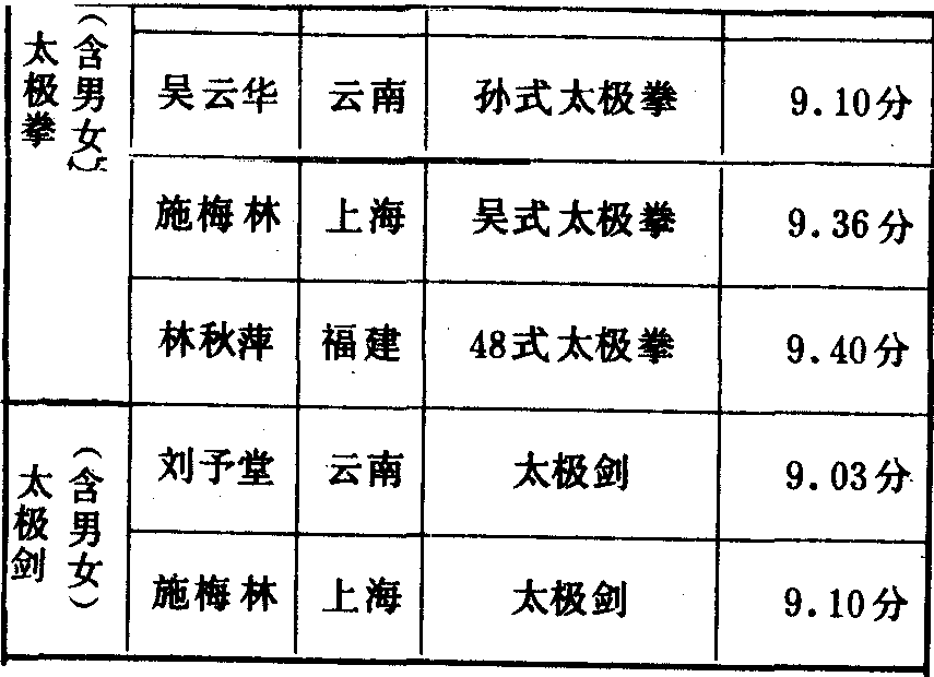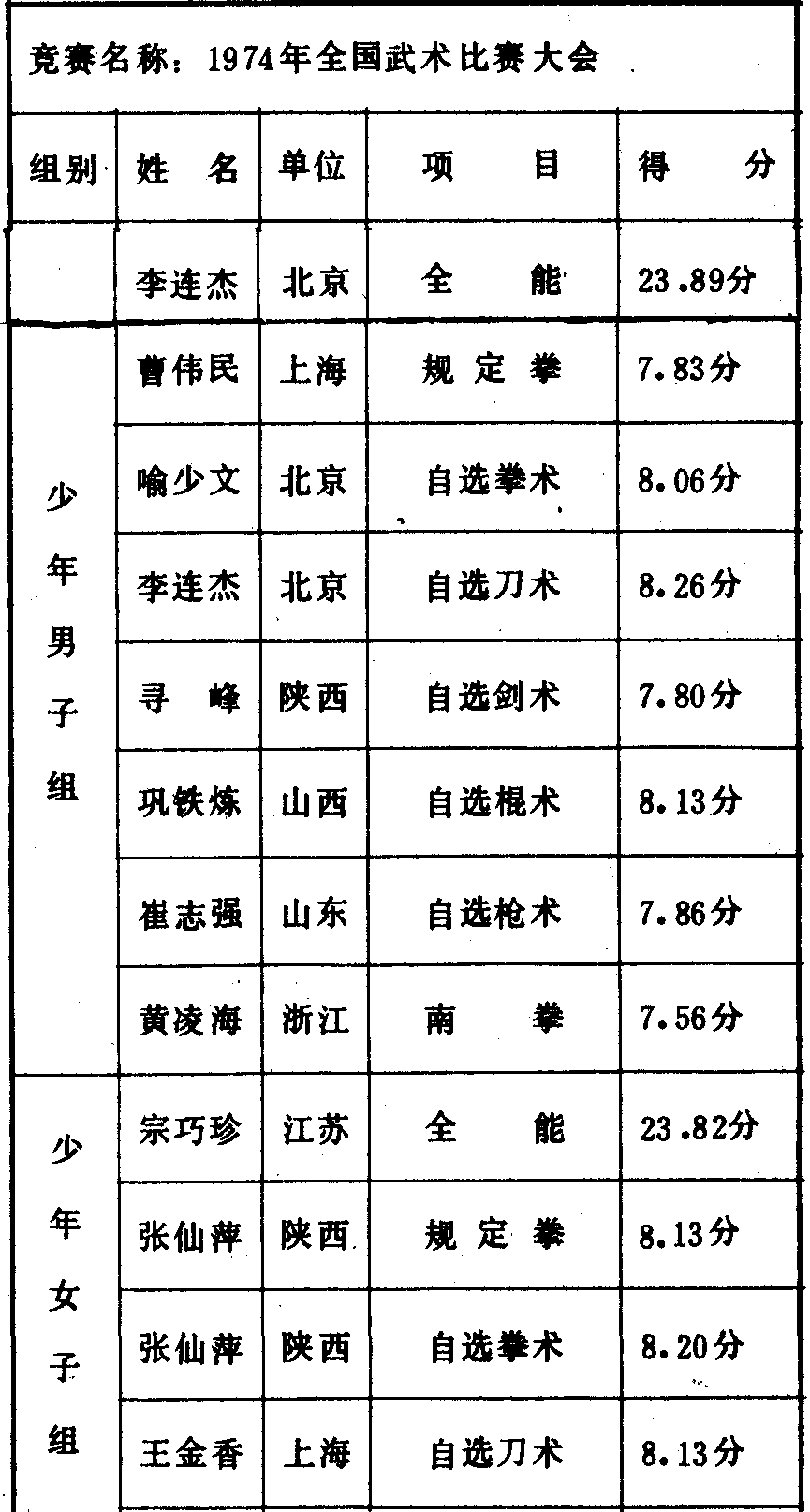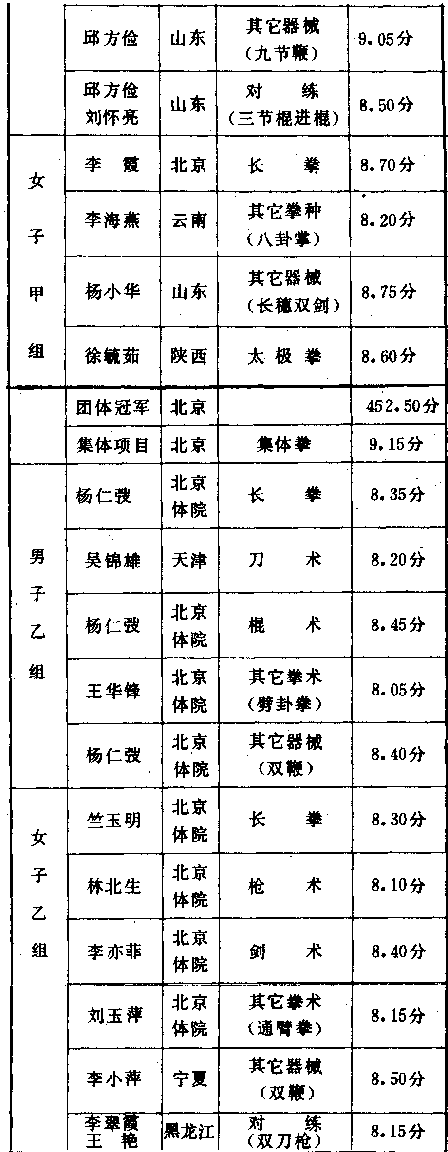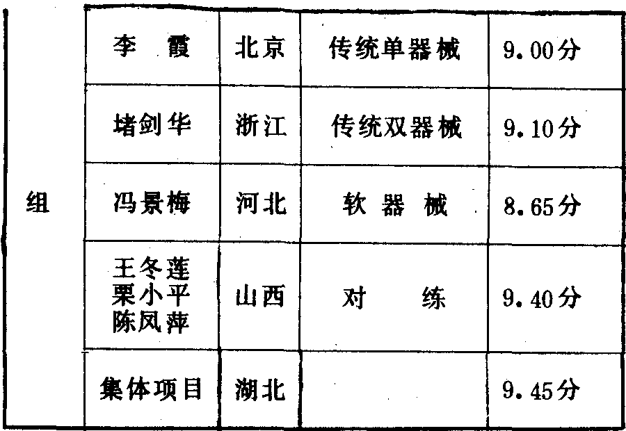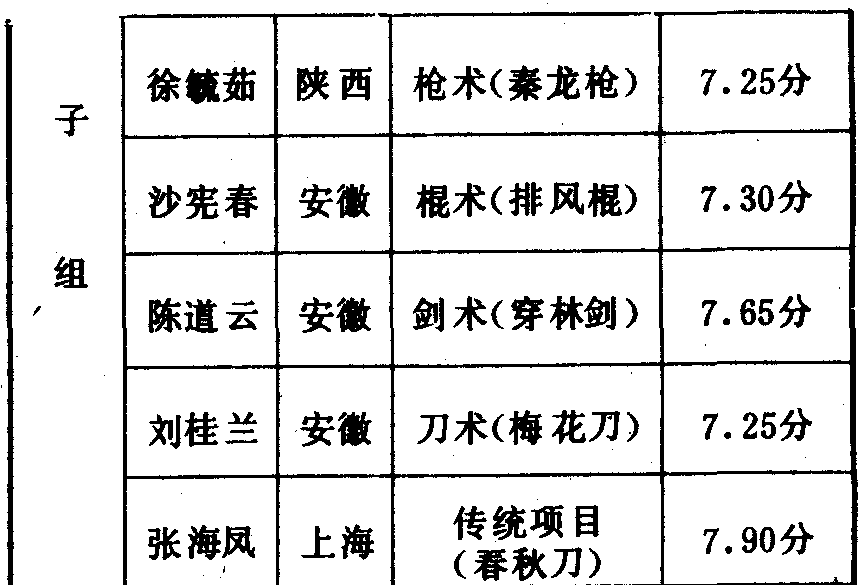 历届全国武术比赛冠军一览表
