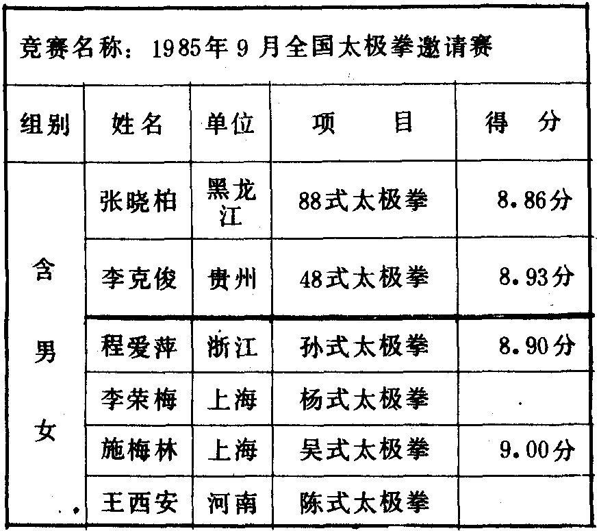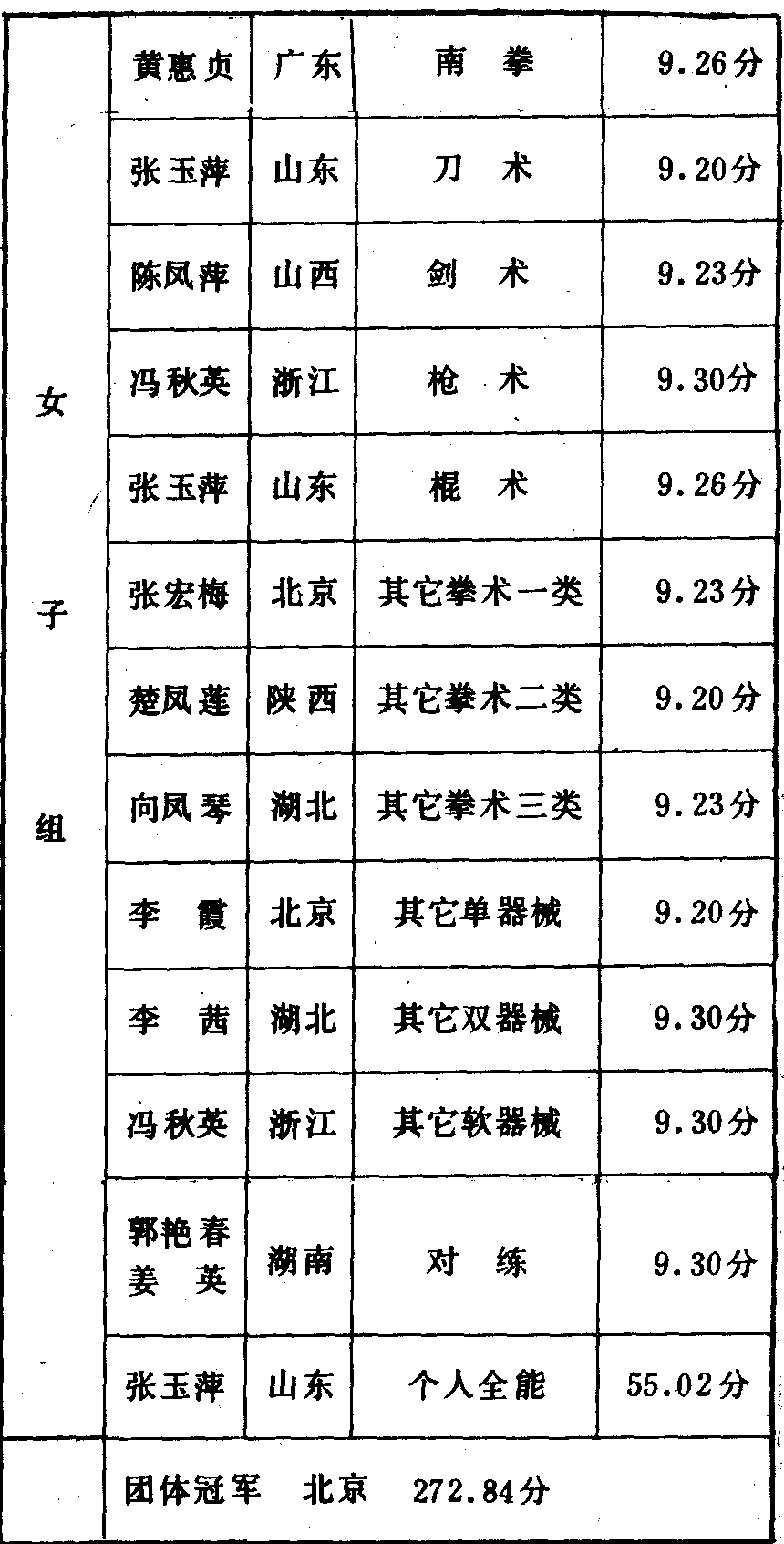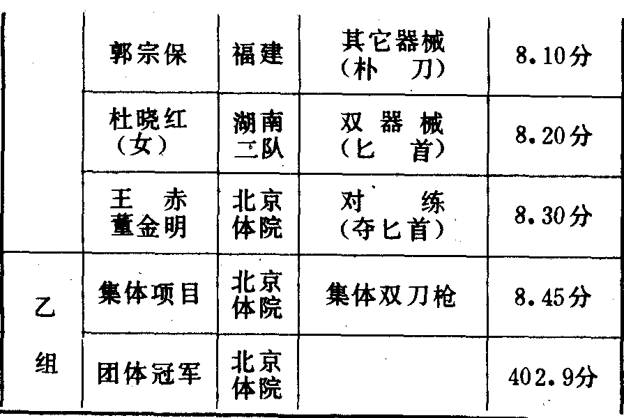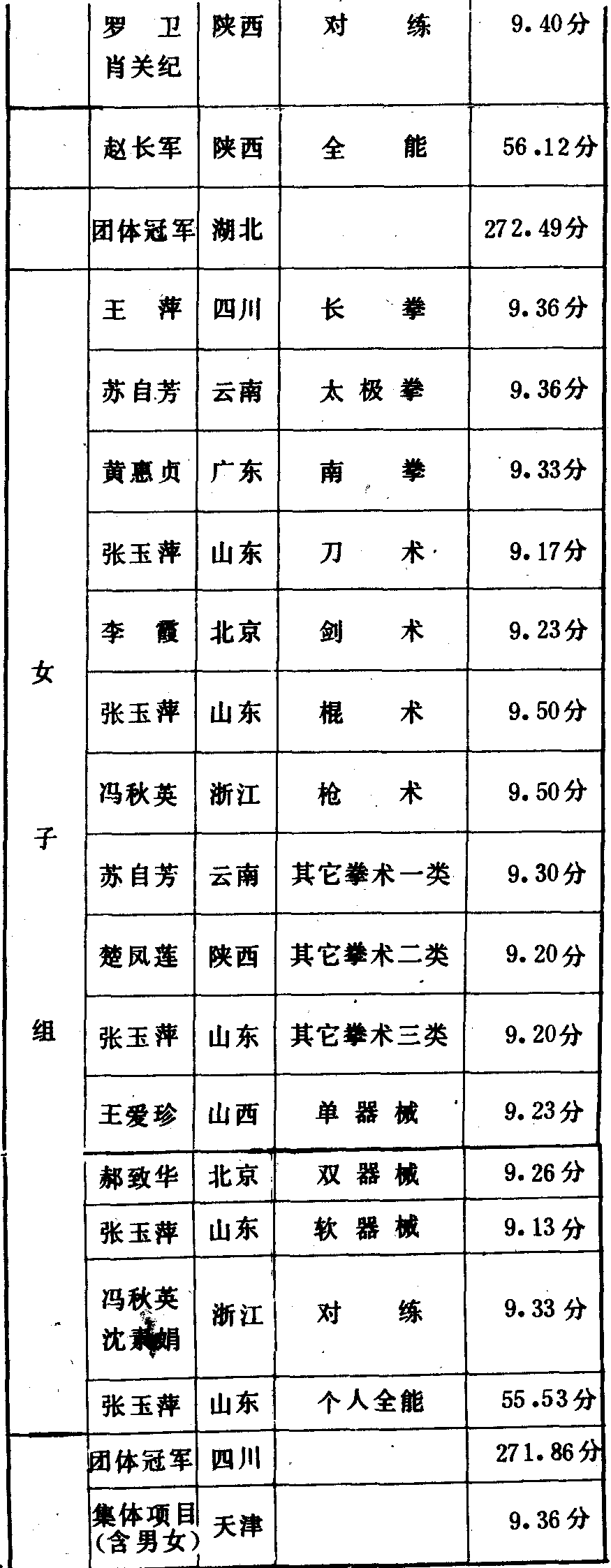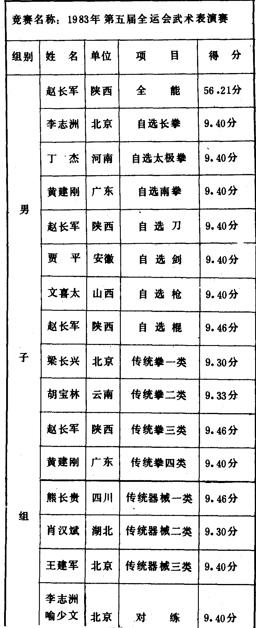 历届全国武术比赛冠军一览表