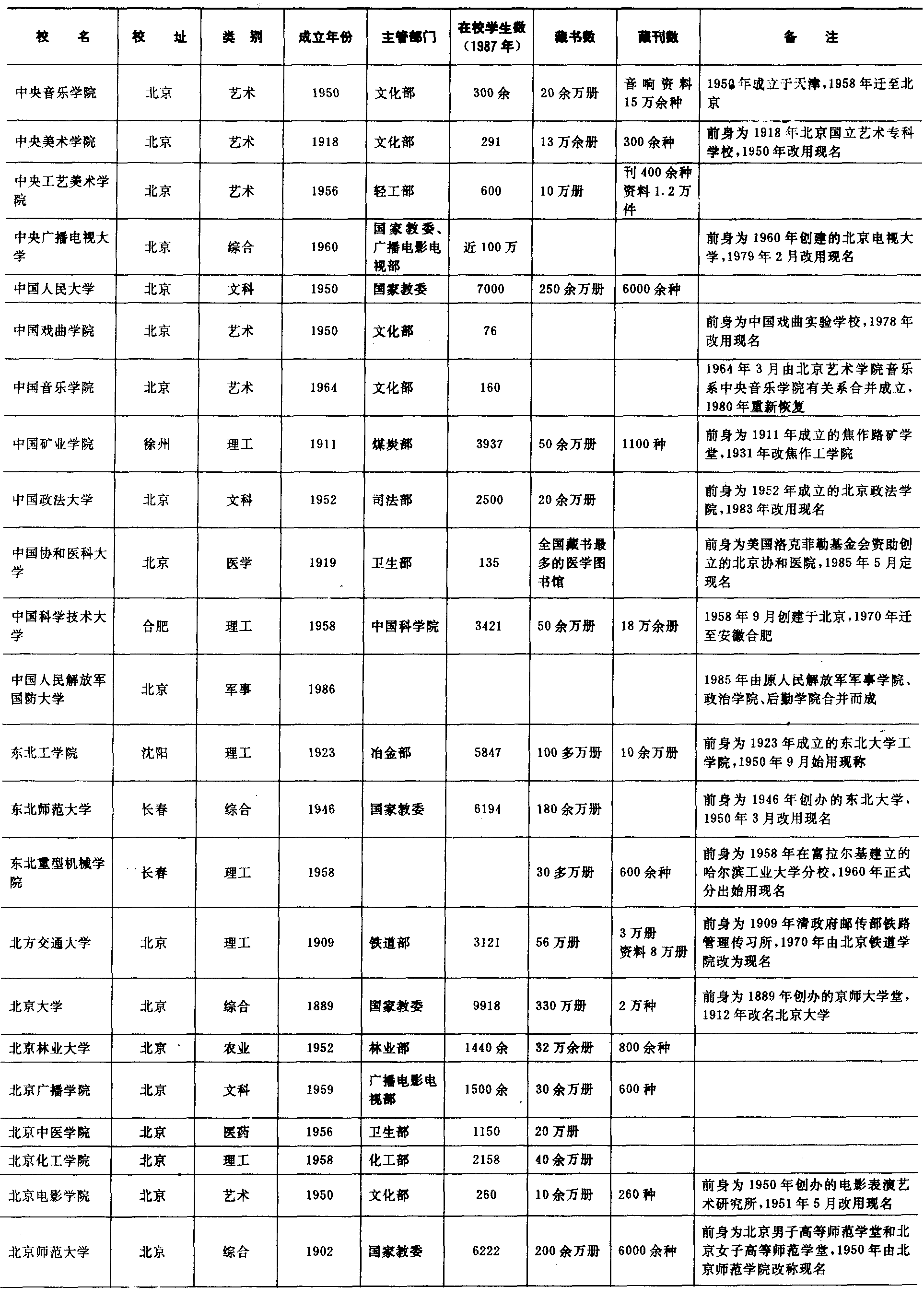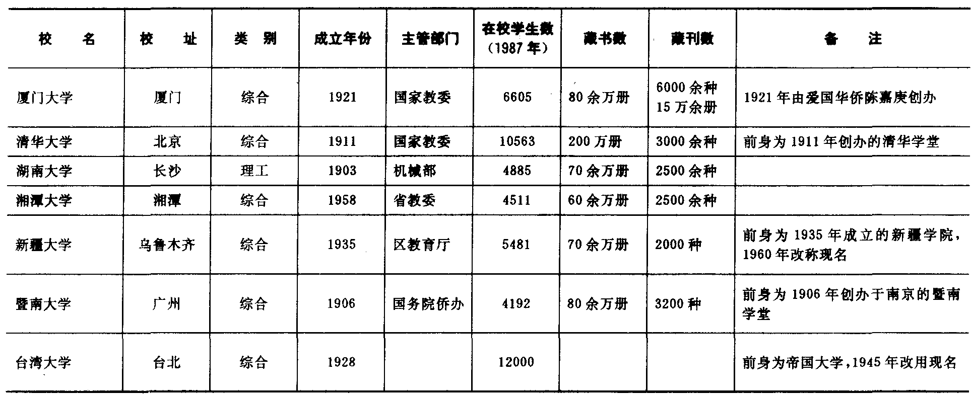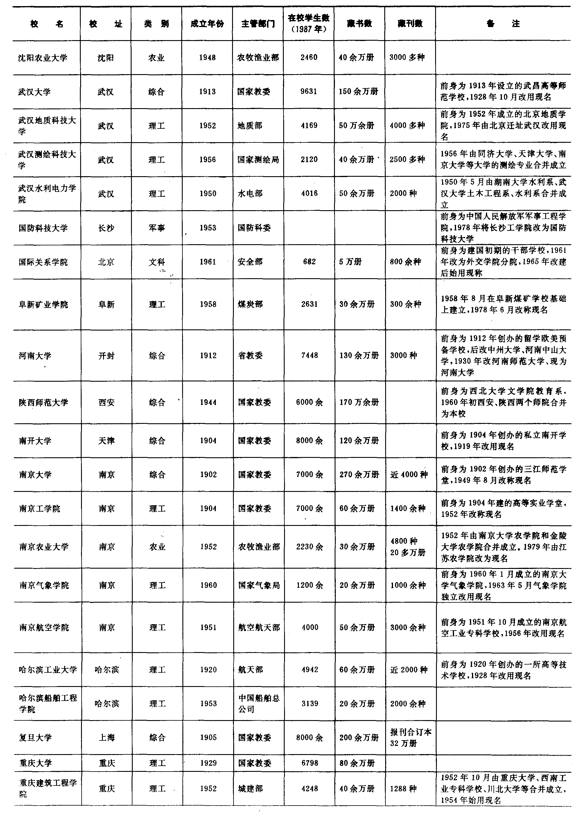 中国百科大辞典︱12. 中国教育综表 12. 中国教育综表 12—1 中国部分大学简况