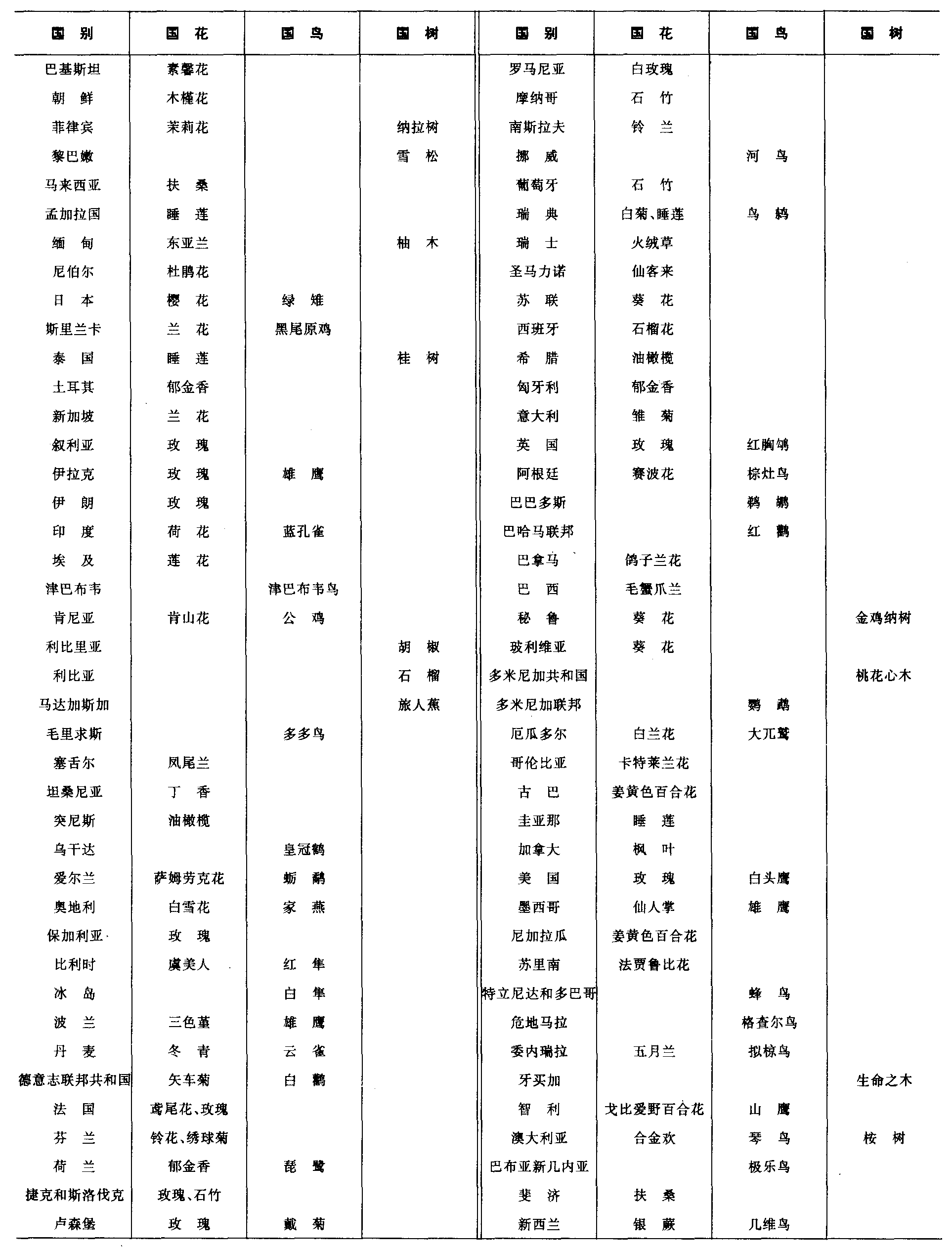 19—2 各国国花、国鸟、国树
