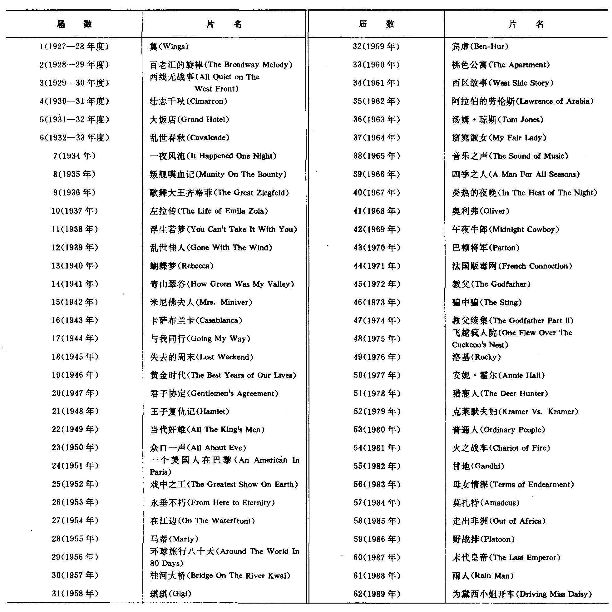 19—4 历届奥斯卡金像奖最佳影片