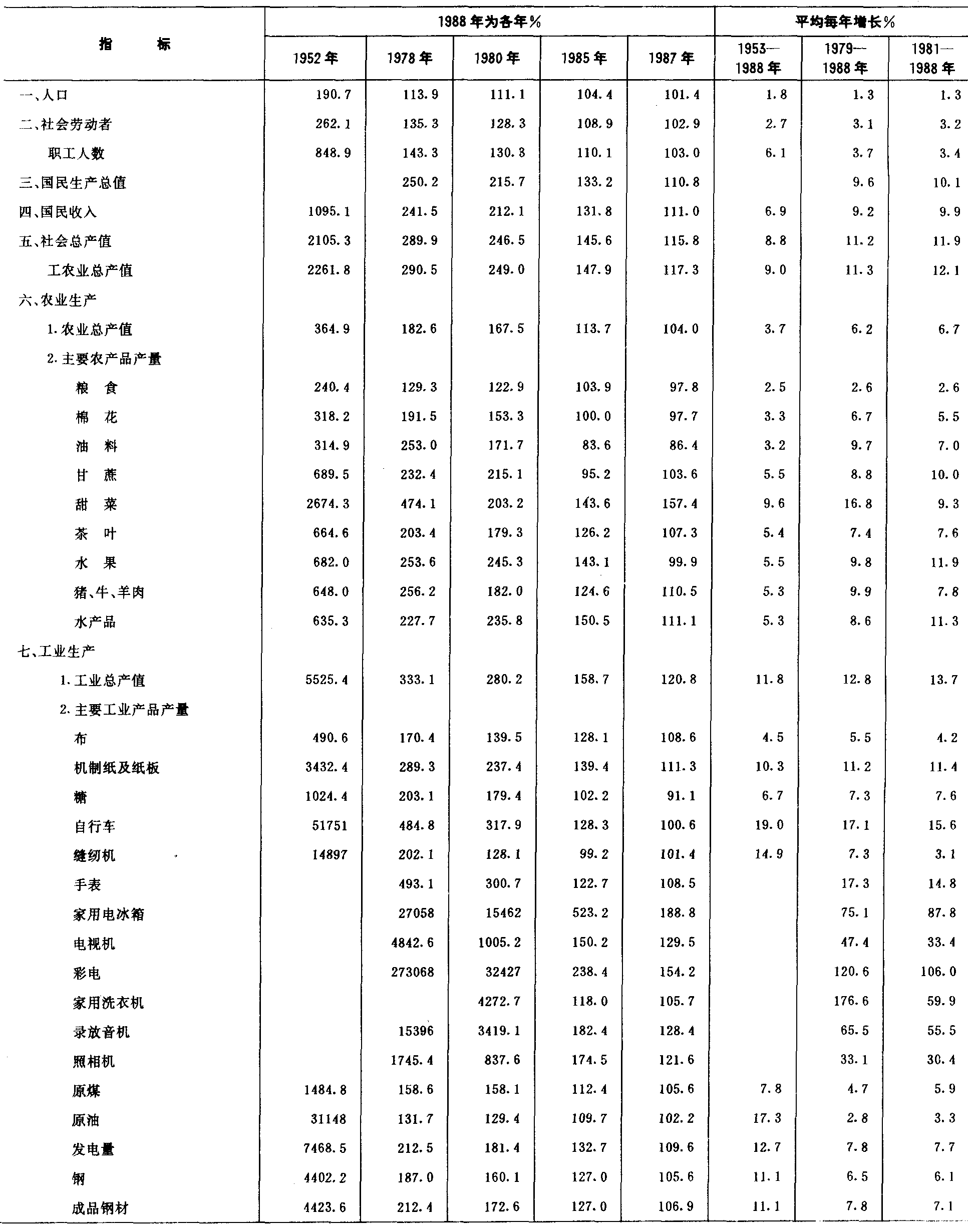附:中国国民经济主要指标发展速度