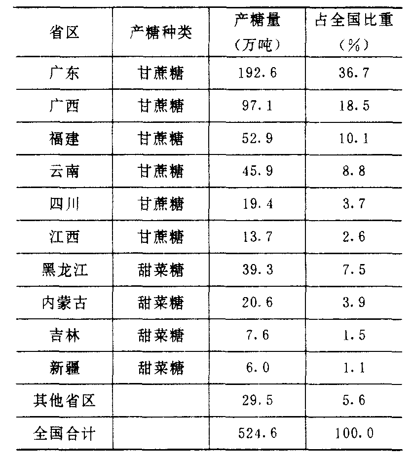 | 释义 | 中国的制糖工业 中国的制糖工业zhongguo de zhitang gongye我国曾是世界最大产糖国之一。但现代制糖业发展缓慢,1936年 (历史最高) 产量仅41.4万吨,1949年下降到19.9万吨,当时仅有广东的东莞、顺德和黑龙江的阿城糖厂勉强维持生产。中华人民共和国成立后,食糖工业作为食品工业建设的重点,较快地获得了发展。1989年全国产糖496万吨,为1949年的25倍,产糖量居世界前列。但由于我国人口众多,人均消费水平仍大大低于世界平均水平。 全国主要产糖省、自治区糖产量(1986)