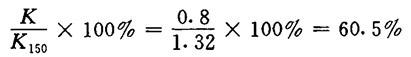 | 释义 | M1408滚筒磨床的中高装置调整查图计算 【说明】 对于M1408滚筒磨床的中高装置的调整可以用查图的方法进行。该法比较简单,可以根据有关数据,直接查出中高数值。 【方法】 按已知的压辊辊长L,在图1-15-60或图1-15-61上查出中高数值表上最大指针读数150时所对应的中高K150,然后求出图纸所要求的中高K对K150的百分数 【例】 已知压辊长度b=2500mm,图纸要求的中高K=0.8mm,调换齿轮Z=45∶45,在图1-15-61上查得K150=1.32mm,则: