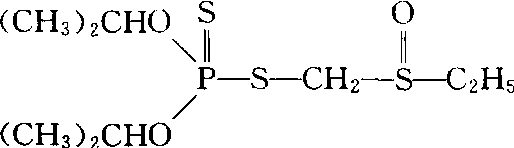 | 释义 | 丰丙磷IPSP有机磷内吸杀虫、杀螨剂。化学名称:S-(乙基亚硫酰基甲基)二异丙基二硫代磷酸酯。化学结构式如下。无色液体,密度1.1696,20 C时蒸气压133.322×10-4 Pa。15℃时水中溶解度为1 500 mg/kg。可与大多数(除丙烷外)有机溶剂混溶。对酸和碱稳定。能被植物根吸收并传导到茎叶。主要用于防治蚜、潜叶蝇及螨类,药效期可达40天。土壤施药一般每公顷有效成分150~250 g。小鼠急性口服LD50为84.5mg/kg。