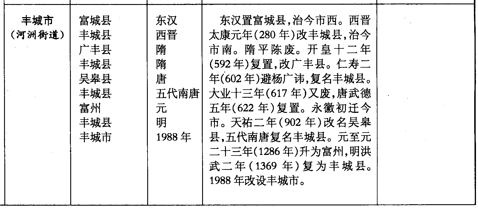 丰城市(河洲街道)富城县丰城县广丰县丰城县吴皋县丰城县富州丰城县丰城市东汉西晋隋隋唐五代南唐元明1988年东汉置富城县,治今市西。西晋太康元年(280年)改丰城县,治今市南。隋平陈废。开皇十二年(592年)复置,改广丰县。仁寿二年(602年)避杨广讳,复名丰城县。大业十三年(617年)又废,唐武德五年(622年)复置。永徽初迁今市。天祐二年(902年)改名吴皋县,五代南唐复名丰城县。元至元二十三年(1286年)升为富州,明洪武二年(1369年)复为丰城县。1988年改设丰城市。