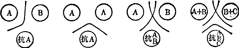 凝集试验 完整的细菌细胞、螺旋体或血细胞等颗粒性抗原与特异性抗体结合,在适当的电解质存在下,经一定时间,颗粒性抗原与抗体结合形成的复合物凝集成肉眼或显微镜可观察到的团块,此现象为凝集反应。凝集试验分直接凝集试验、间接凝集试验和间接凝集抑制试验。 (1) 直接凝集试验: 简称凝集试验,是颗粒性抗原与相应抗体直接结合所出现的凝集现象。方法有玻片法和试管法,前者主要定性,系将含有已知抗体的诊断血清与待检菌液各放一滴在玻片上混合。数分钟后,若出现凝集现象,是为阳性反应。此法简便、快速,常用于从临床标本分离得的菌株的鉴定或分型。人类红细胞ABO血型的测定也用本法。试管法主要用于定量。操作时是将受检者血清用生理盐水作倍比稀释,然后加入等量抗原。最高血清稀释度仍呈现明显凝集者,为该血清的效价(或称滴度)。判定结果时,应考虑当地人群抗体水平、有否预防接种史和过去患病史。临床上常用的有肥达试验和外斐试验等。肥达试验是以伤寒杆菌的菌体和鞭毛抗原、副伤寒杆菌甲、乙的鞭毛抗原来测定伤寒病人血清抗体。外斐试验是以与立克次体有共同抗原的变形杆菌OX19、OX2或OXK株测定立克次体病人血清抗体。 (2) 间接凝集试验(图1)。是指将可溶性抗原或抗体先吸附于一种与免疫无关、一定大小的颗粒状物体(载体)表面,然后与相应抗体(或抗原)作用而出现的凝集试验。常用的载体颗粒有人的O型或绵羊、家兔等动物红细胞、聚苯乙烯胶乳(0.6~0.7μm直径)或矽酸铝、炭末颗粒等。若用红细胞作载体颗粒,又称为间接血凝试验。由于载体颗粒增大了可溶性抗原(或抗体)的反应面积,故敏感度比直接反应为高。本试验可测定细菌、病毒、螺旋体等微生物性抗体,亦可协助诊断血吸虫病等寄生虫性疾病以及类风湿关节炎等自身免疫病。检测原发性肝癌患者血中的甲胎蛋白等试验亦属之。 (3) 间接凝集抑制试验: 若先将可溶性抗原与抗体混合,隔一定时间加入抗原致敏的载体颗粒,则因抗体已被中和,不再发生凝集现象。例如检测妊娠妇女尿中的绒毛膜促性腺激素。 沉淀试验 细菌浸出液或培养滤液、组织浸出液、动物血清等可溶性抗原与特异抗体结合,经一定时间,形成肉眼可见的沉淀物,称沉淀试验。常用沉淀试验如下: (1) 环状沉淀试验: 是在小口径试管内先加已知抗体血清,再覆盖待检抗原。数分钟后,若两层液面交界处出现白色沉淀环,为阳性反应。用于炭疽病的辅助诊断(Ascoli试验)、法医上鉴别血迹、媒介昆虫嗜血性等。 (2) 单向琼脂扩散试验: 将抗体混合于琼脂中,倾注于平皿或玻片上。凝固后打孔,将抗原加入孔内,使其向四周自由扩散。抗原与抗体形成复合物的直径与抗原浓度成正比,从事先求得的标准曲线中可推算出抗原含量。本试验主要用于检测标本中各种免疫球蛋白或血清中补体组分的含量。 (3) 双向琼脂扩散试验(图2): 制备琼脂板后,打成多个小孔,然后将抗原和抗体分别注入小孔,令两者相互向四周自由扩散。经一定时间后,观察有无白色沉淀线形成。主要用于测定甲胎蛋白,分析和鉴定复杂的抗原组分等。 (4) 对流免疫电泳: 以琼脂制板后,打孔,在阴极端孔加抗原,阳极端孔加抗体,通电一定时间后,观察抗原抗体两孔间有无白色沉淀线出现,若有为阳性。本试验因限定抗原抗体向相对方向移动,故可提高敏感度,比双向琼脂扩散试验敏感约10~15倍。且一般在1小时内可得结果。本试验常用以测定血清中的甲胎蛋白、乙型肝炎表面抗原等。 (5) 电免疫扩散法(图3): 又称火箭电泳,是在含有已知抗体的琼脂板阴极端打一排小孔,各孔加入定量待检样品及标准抗原。电泳后,抗原在扩散过程中,与抗体结合后在适合比例部分形成锥形沉淀峰,状如火箭,故名。沉淀峰的高低与抗体浓度成正比,同标准品比较可推算出标本中的抗原含量。本试验敏感度与单向琼脂扩散试验相仿,但结果一般当天可得,而后者至少24小时。
