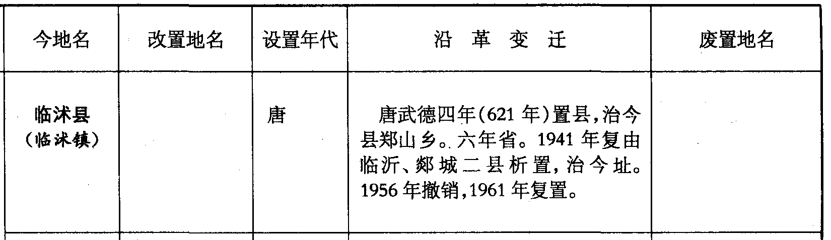 临沭县(临沭镇)唐唐武德四年(621年)置县,治今县郑山乡。六年省。1941年复由临沂、郯城二县析置,治今址。1956年撤销,1961年复置。