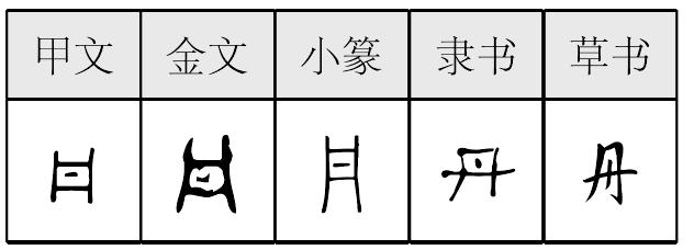 丹,甲骨文作,金文作,《説文》古文作,小篆作