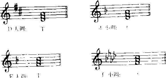 | 释义 | 主和弦 主和弦Zhuhexian在第Ⅰ级(主音)上构成的和弦。和声功能标记为“T”。它的根音是主音。为了使调式性质明确,主和弦中的音在曲调里常处于显著地位(用长时值在强拍上反复出现),乐曲总以它结束,常以它开始。主和弦是调的和声中心,它的功能性质是“静”的、稳定的。当主和弦前面是属和弦时,它的主和弦身份十分显著。在主音上构成的三和弦叫主三和弦,主三和弦是调式中最稳定的和弦,有明确巩固调式调性的作用。如: