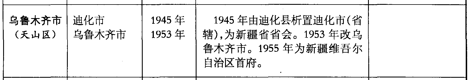 乌鲁木齐市(天山区)迪化市乌鲁木齐市1945年1953年1945年由迪化县析置迪化市(省辖),为新疆省省会。1953年改乌鲁木齐市。1955年为新疆维吾尔自治区首府。