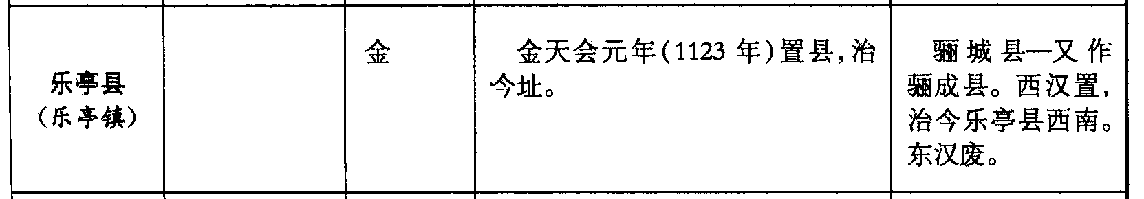 乐亭县(乐亭镇)金金天会元年(1123年)置县,治今址。骊城县—又作骊成县。西汉置,治今乐亭县西南。东汉废。