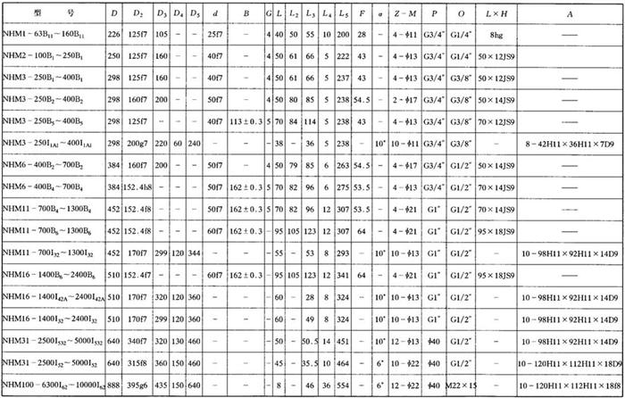 NHM系列马达安装及连接尺寸见表12.5-4(对应图12.5-2)和表12.5-5(对应图12.5-3)。